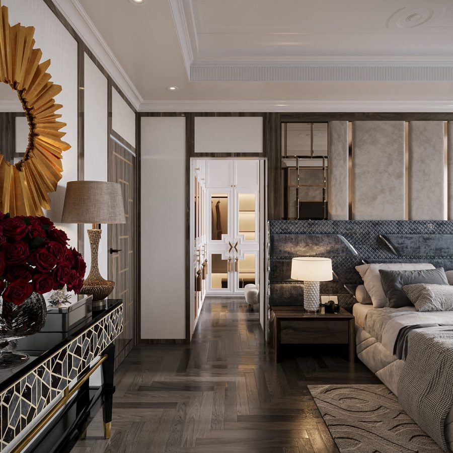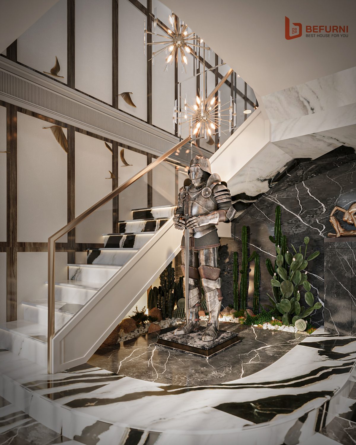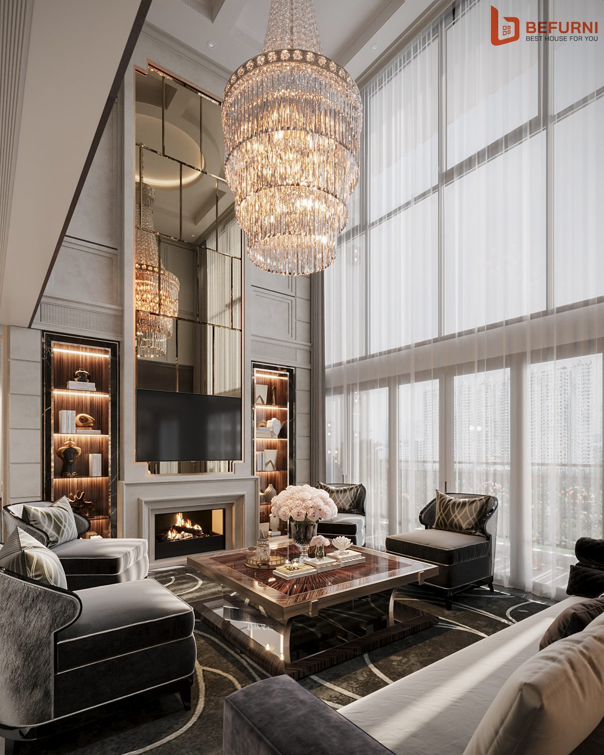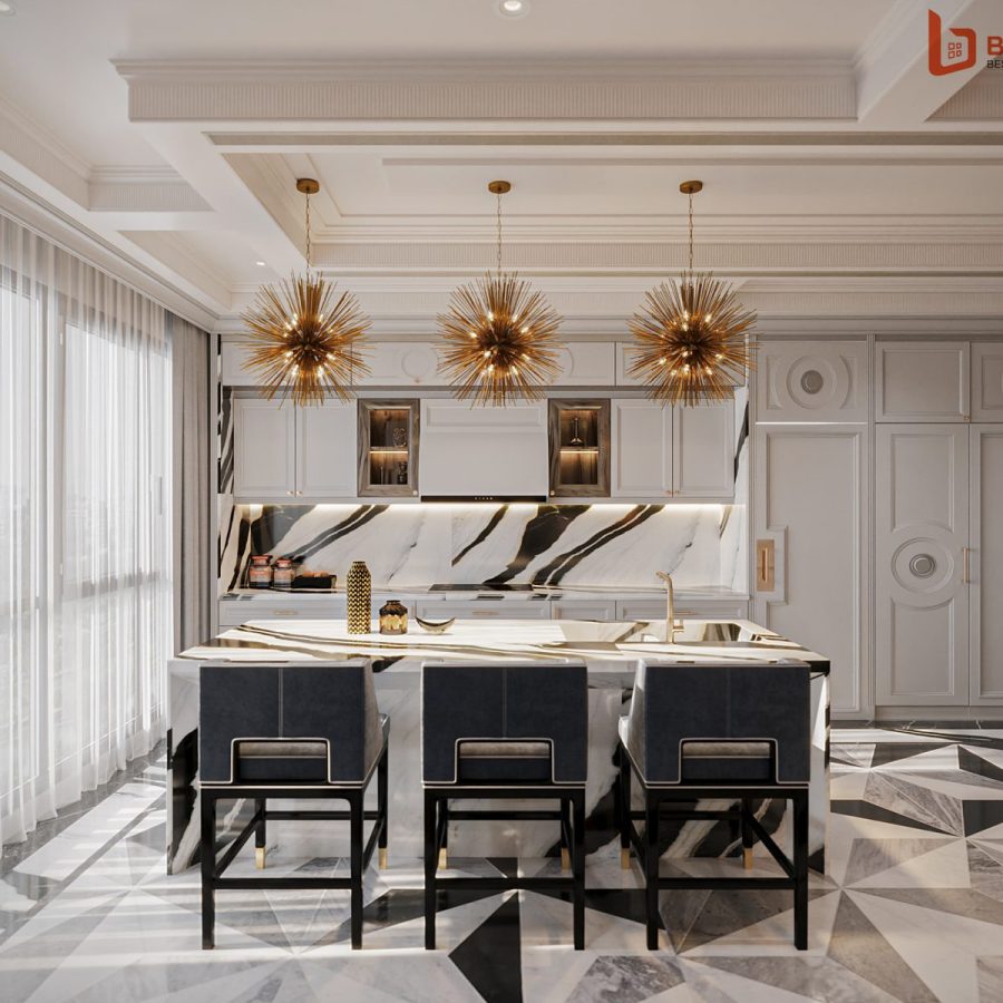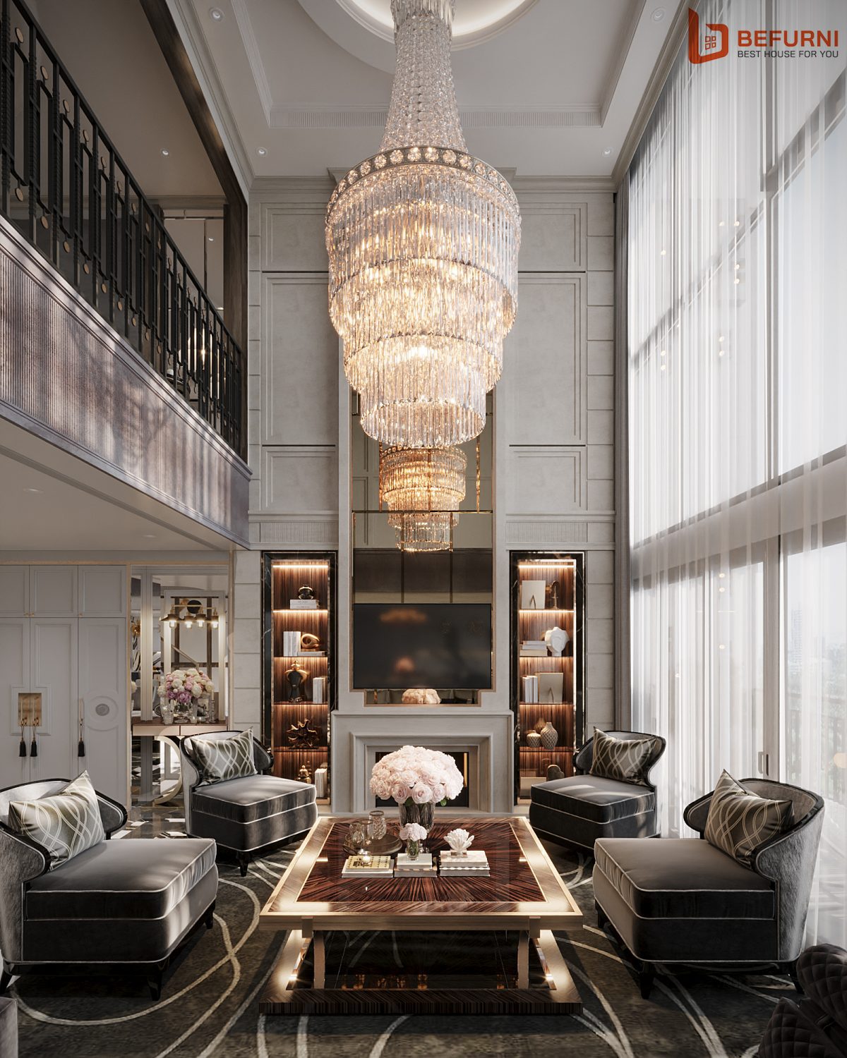 Luxury Modern Living Room with Marble Coffee Table and Black Sofa Set – 3D Model_IDC1118107877