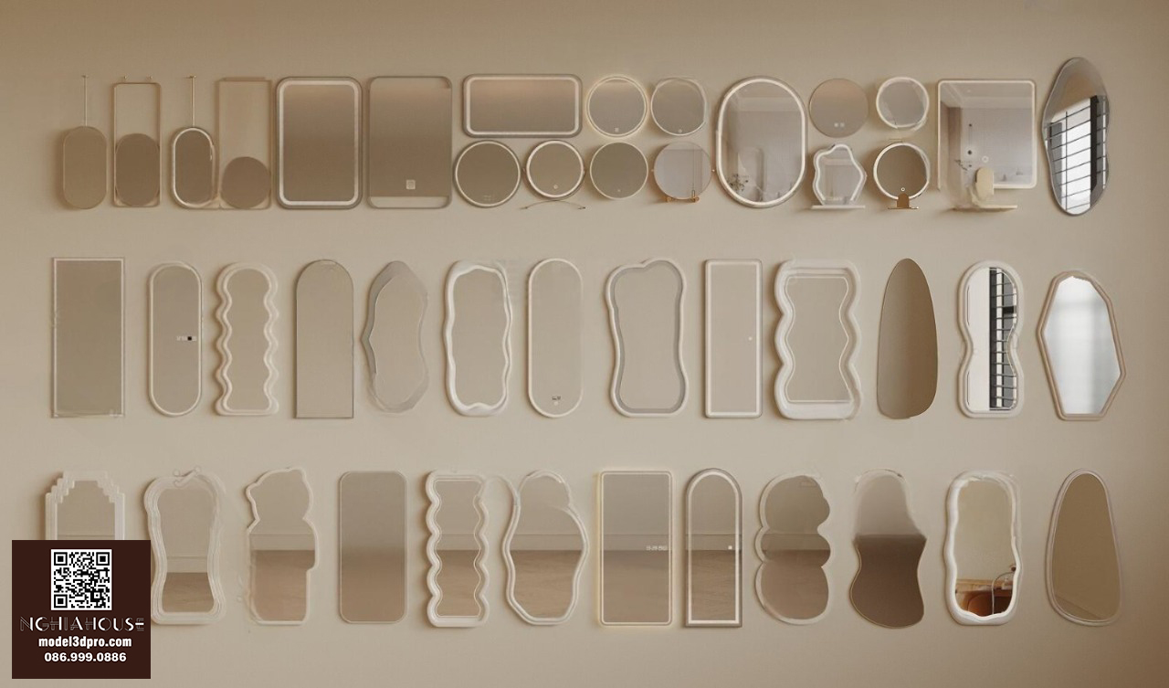 “Download free 3D model collection of modern decorative wall mirrors with various shapes and styles. Perfect for interior design, living room, bedroom, bathroom, and showroom visualization. Compatible with 3ds Max, V-Ray, and Corona Renderer.”