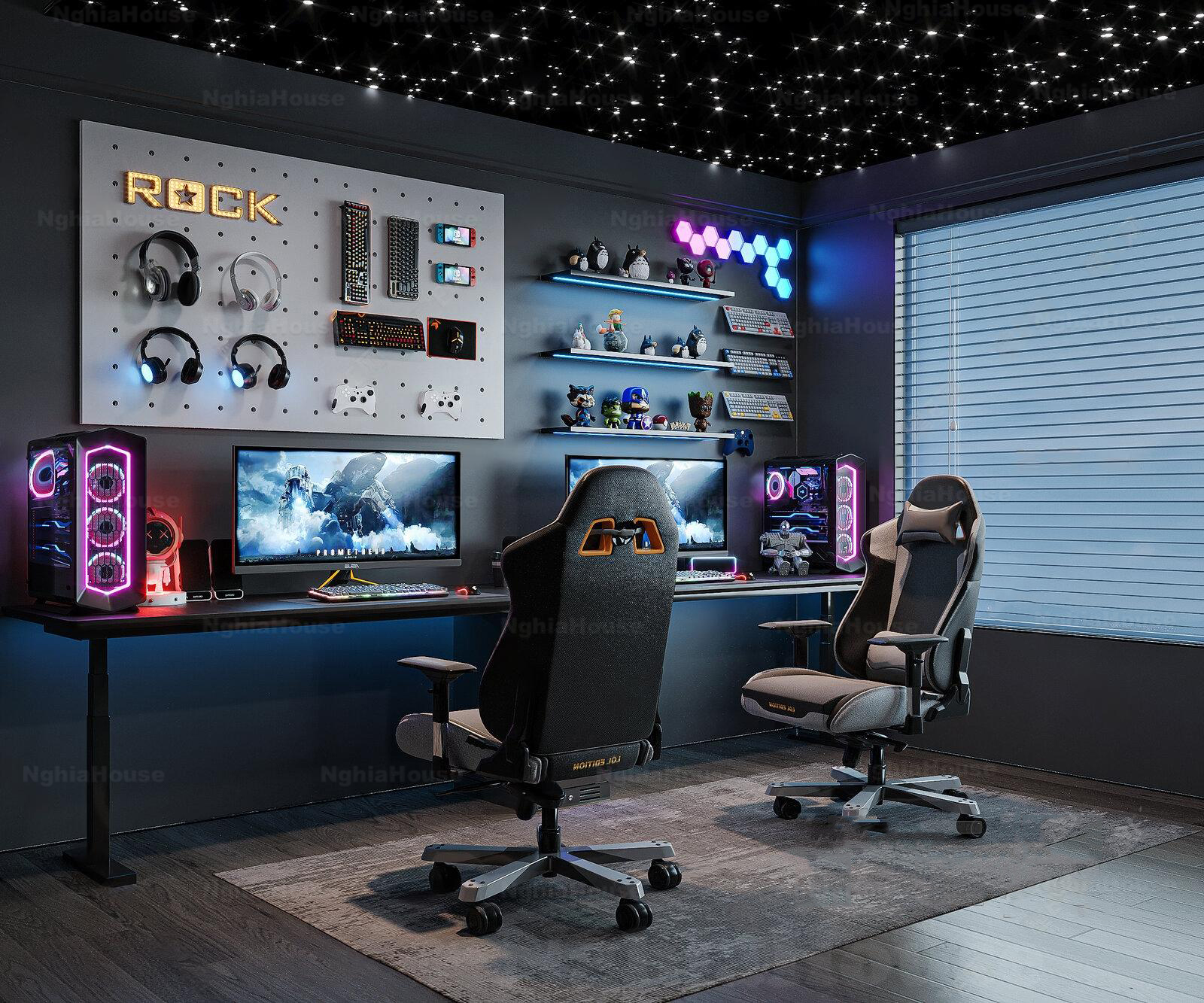 Modern Home Office with Minimalist Desk and Modular Sofa – 3D Model_1164296058