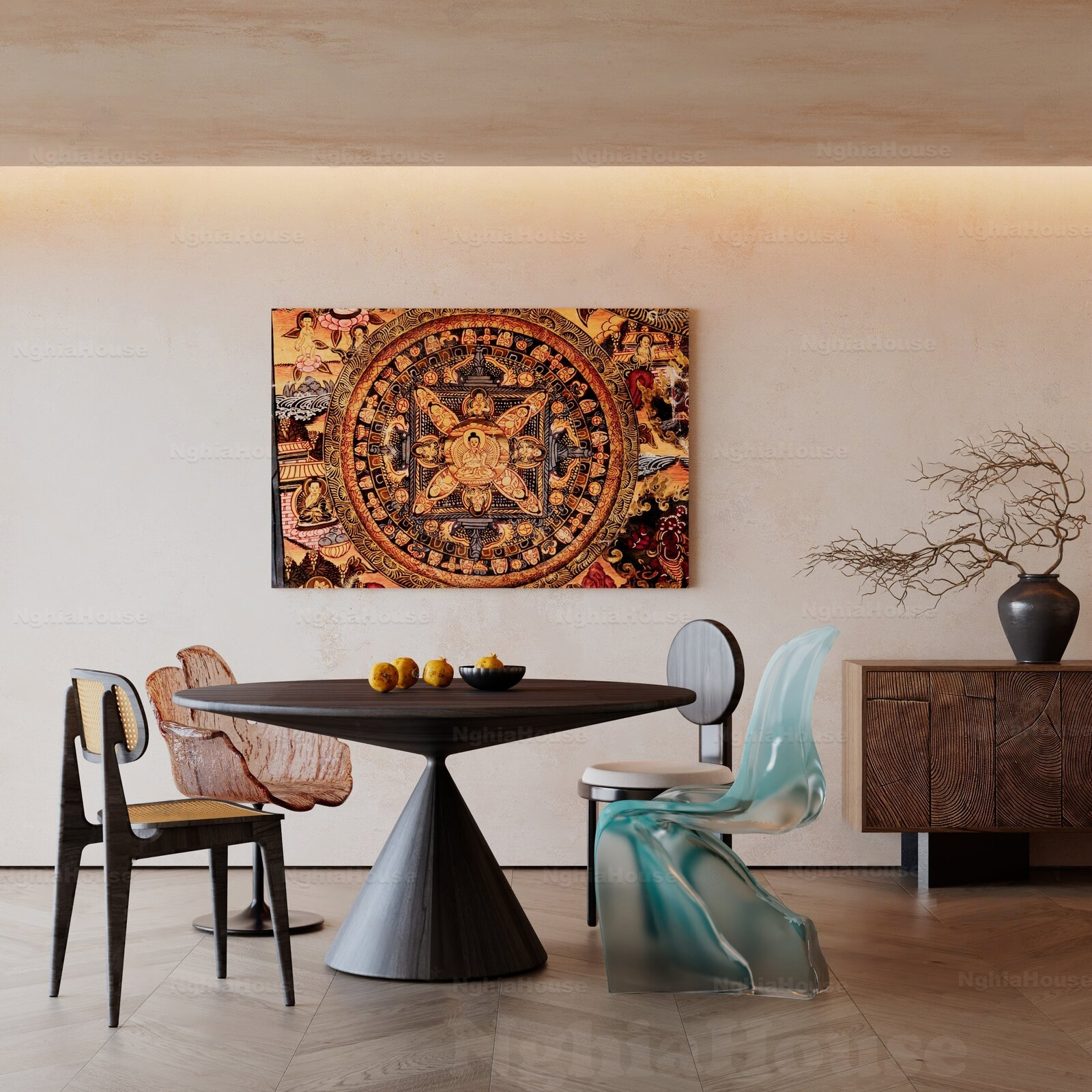 Asian Style Luxury Dining Room with Round Table and Wall Art – 3D Model_HCI4803719917259