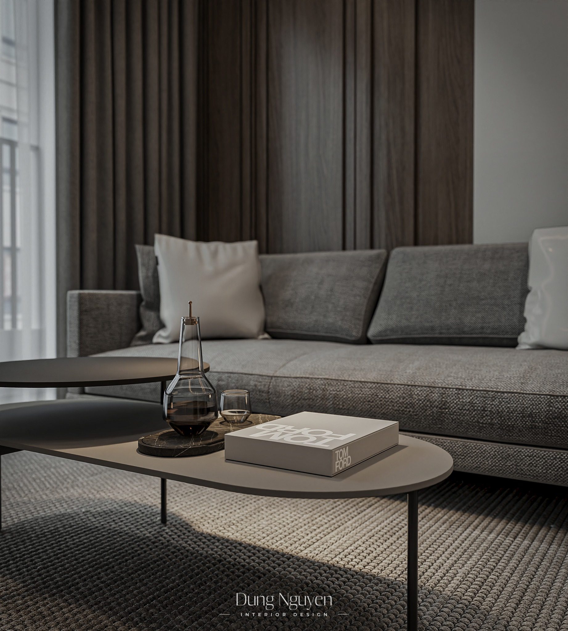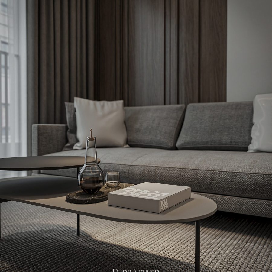 Luxury Modern Living Room with Marble Coffee Table and Black Sofa Set – 3D Model_IDC1118107877