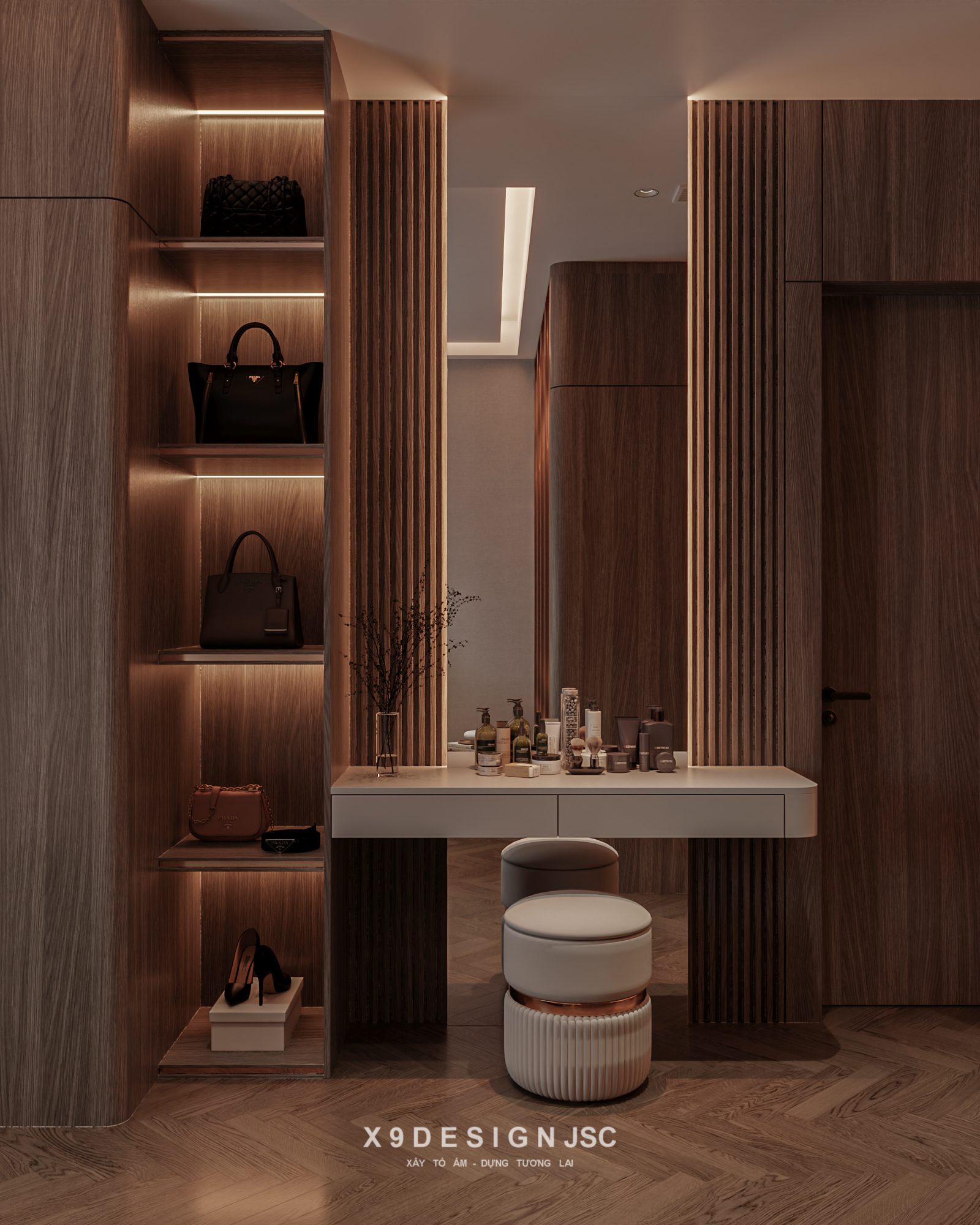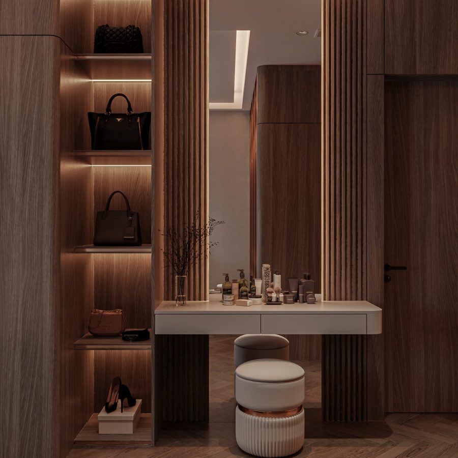 3D Luxury Walk-in Closet Interior – Modern Dressing Room Design_106914533