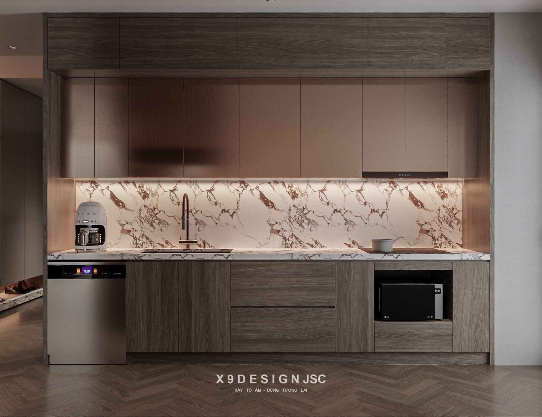 Modern Kitchen Cabinet with Coffee Station and Appliances – 3D Model_1155387167