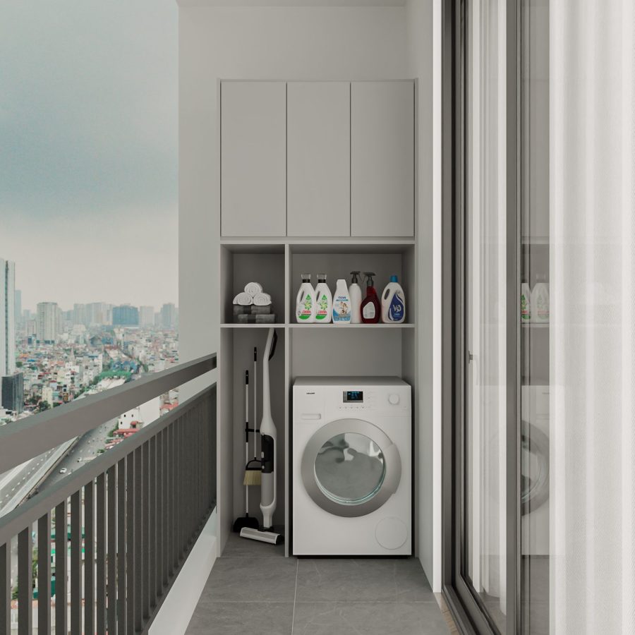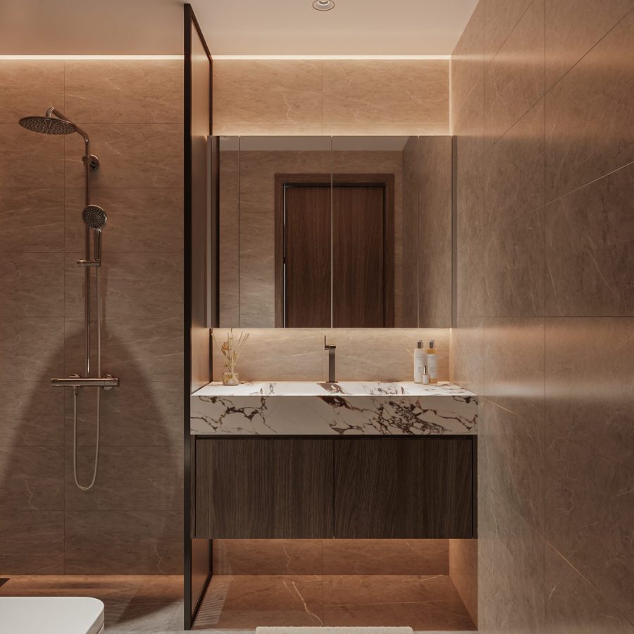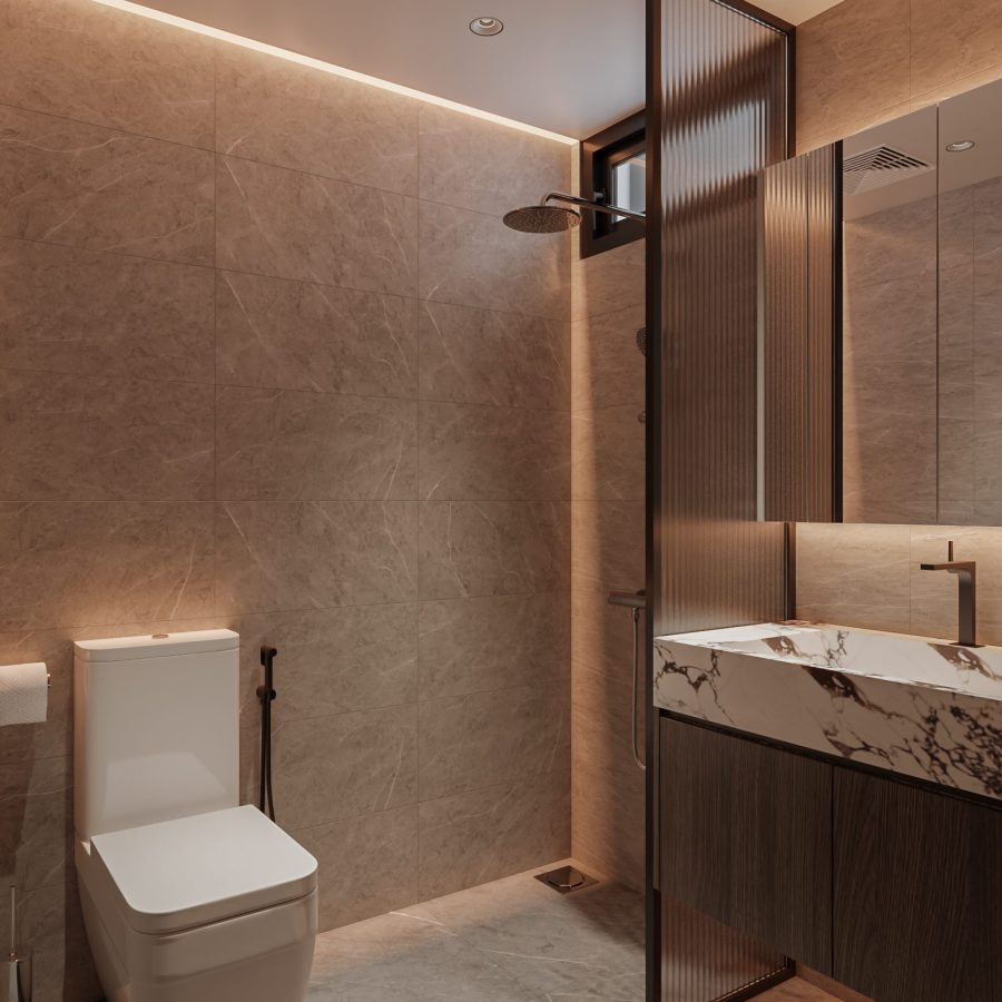 Modern Bathroom with Bathtub and Laundry Area – 3D Model_IDC593643406