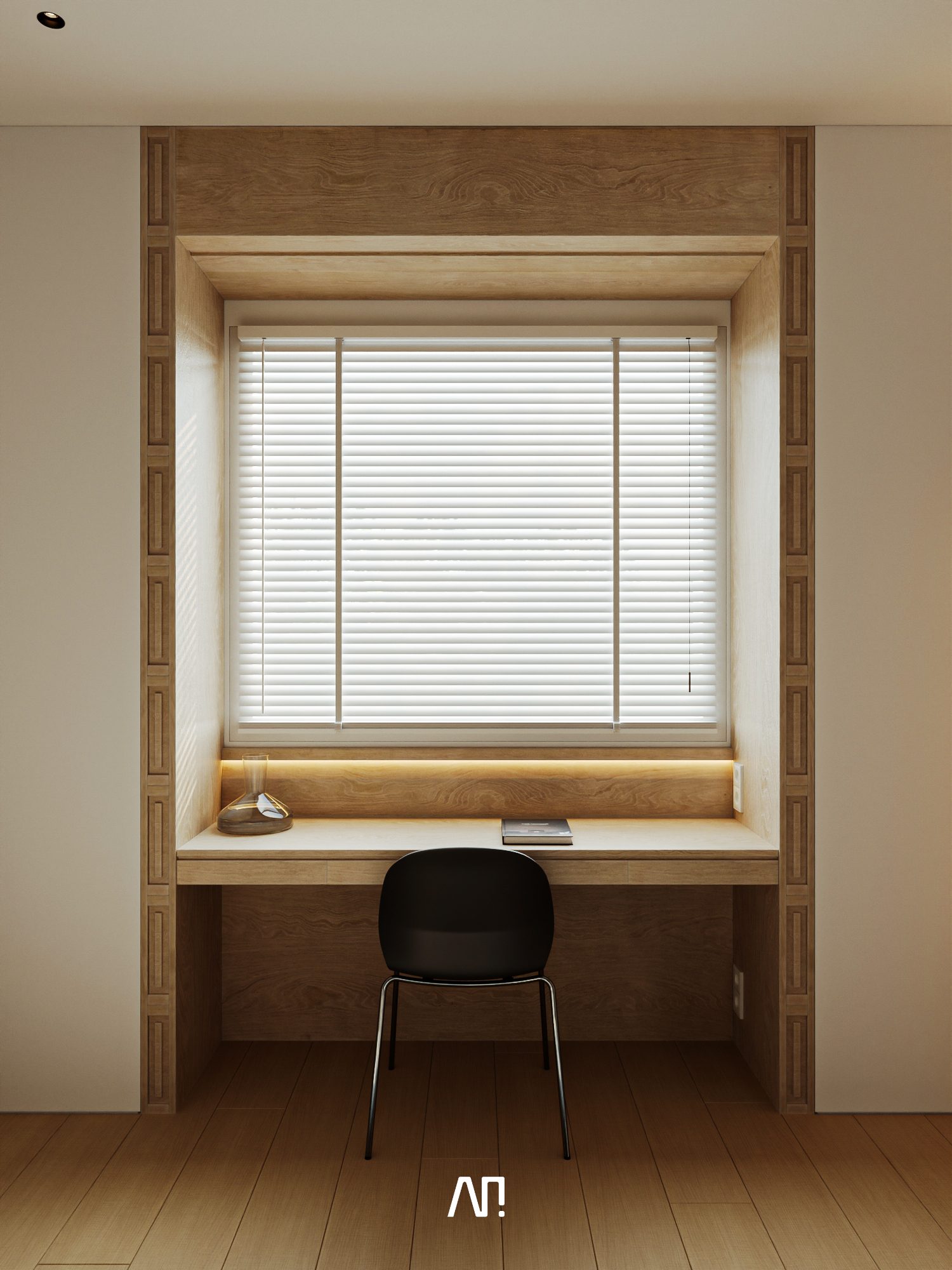 Modern Home Office with Minimalist Desk and Modular Sofa – 3D Model_1164296058