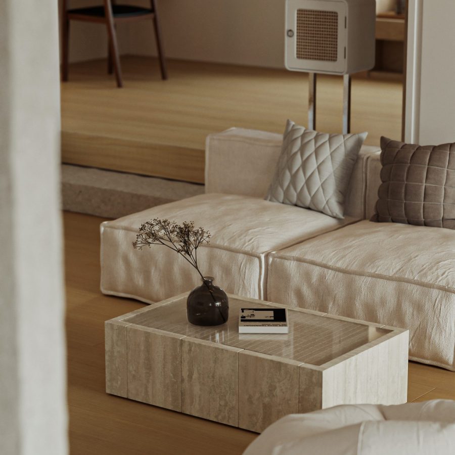 Luxury Modern Living Room with Marble Coffee Table and Black Sofa Set – 3D Model_114971306