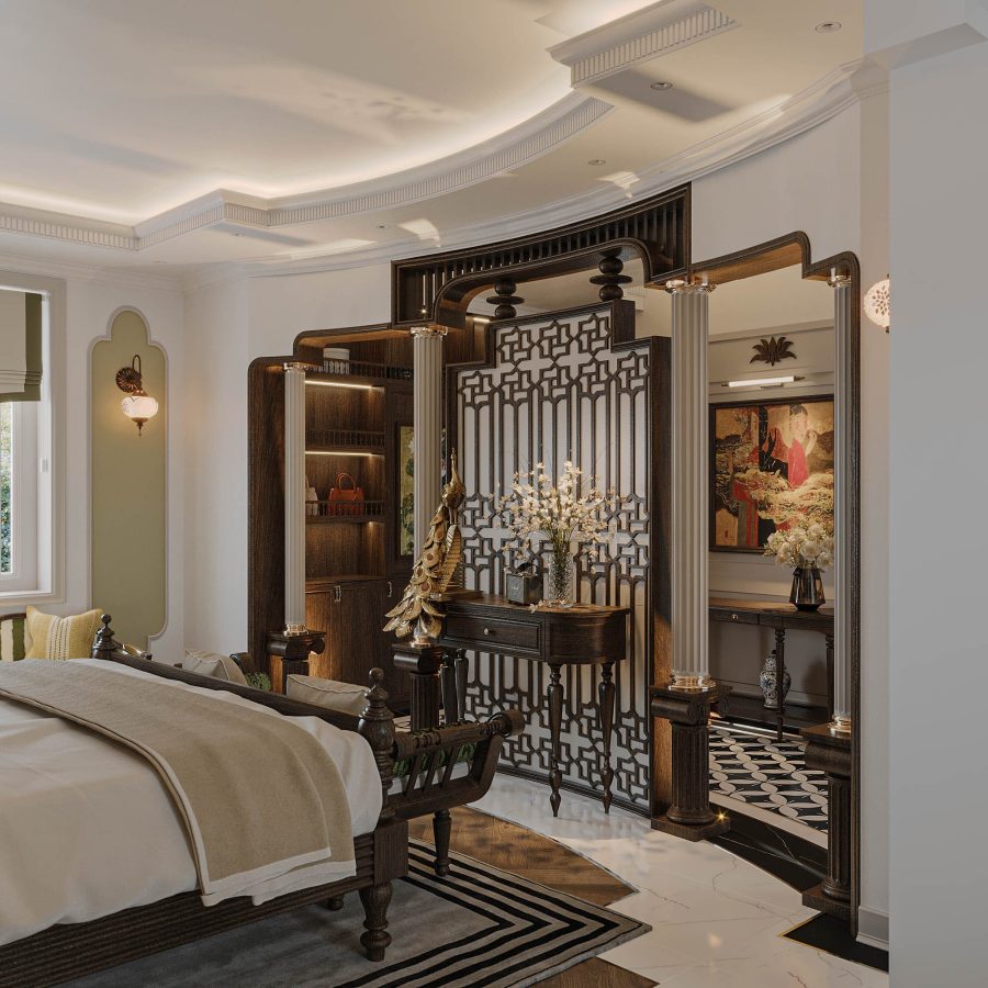 3D Model Oriental Console Table with Decorative Wall Panel_HJI4803713120066
