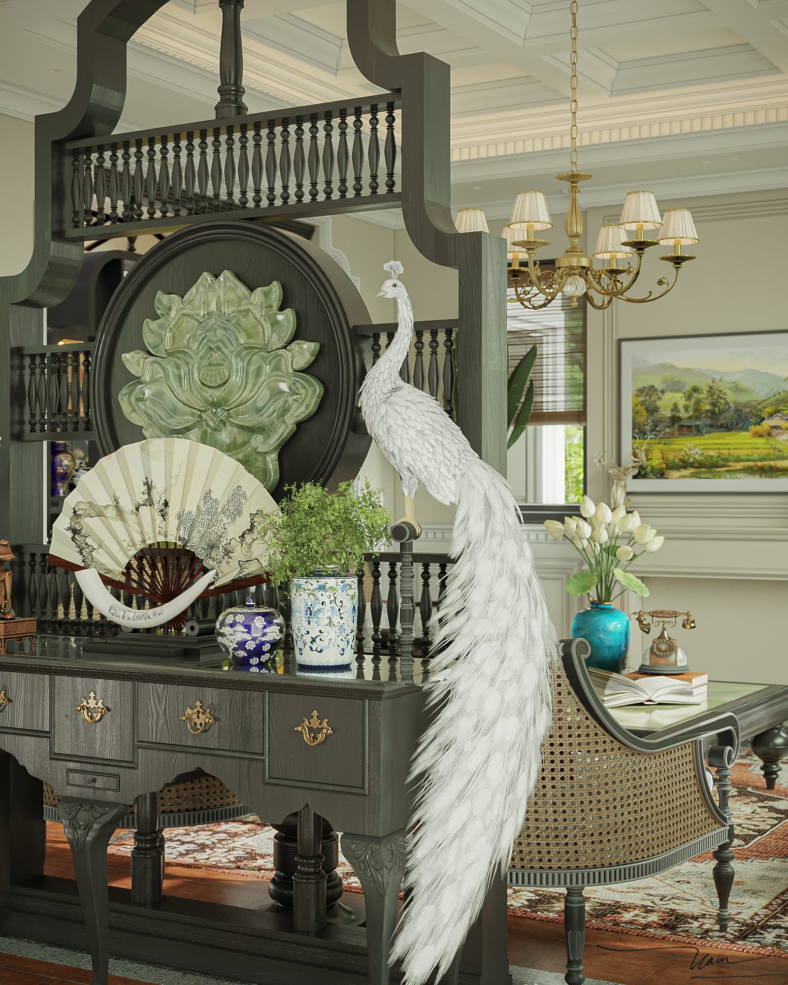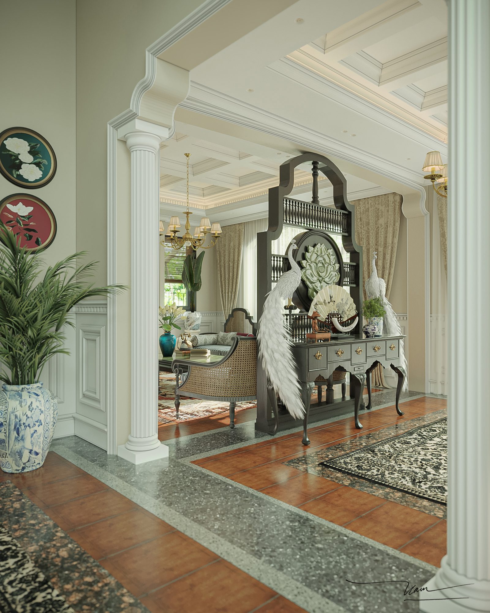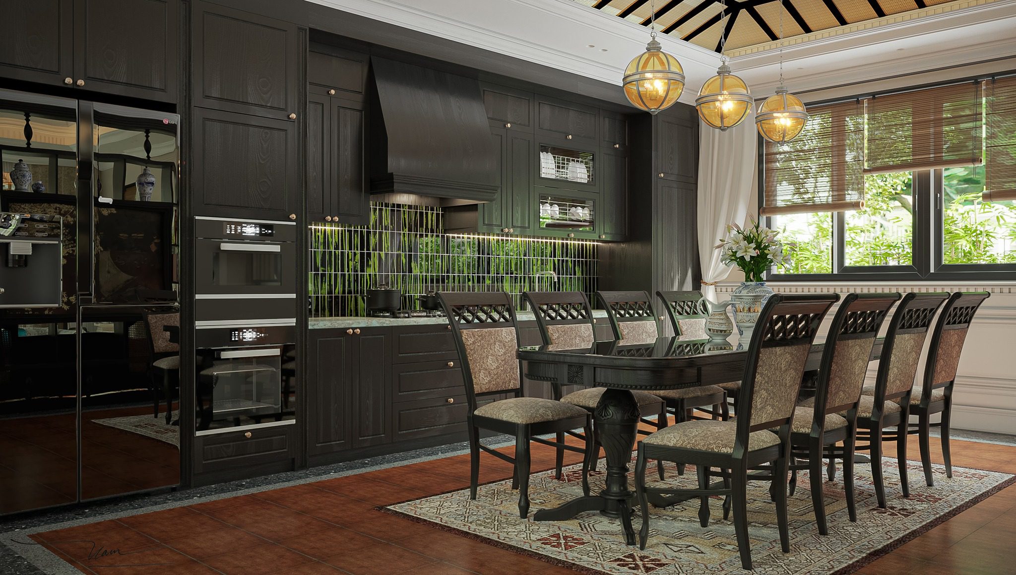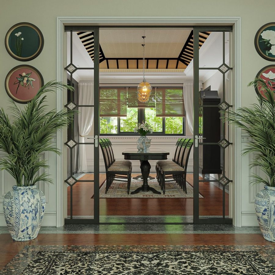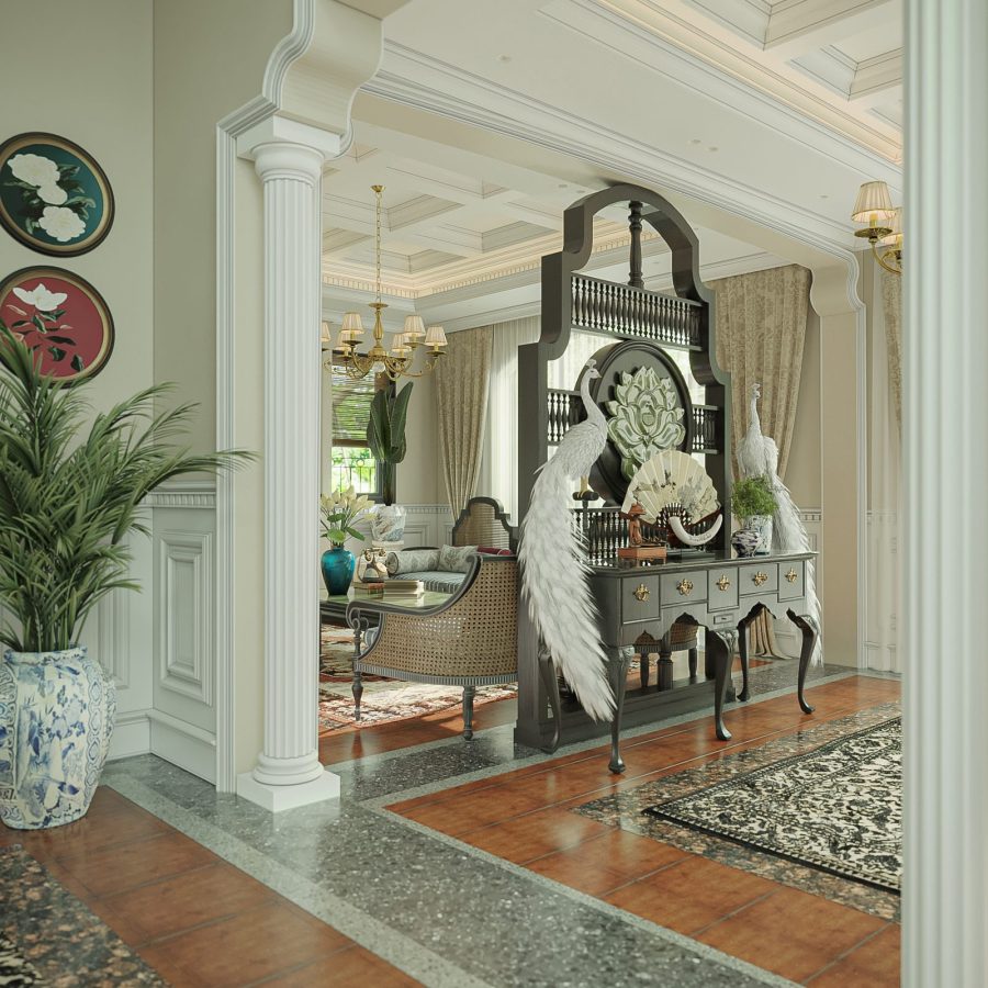Asian Style Luxury Dining Room with Round Table and Wall Art – 3D Model_HCI4803719917259