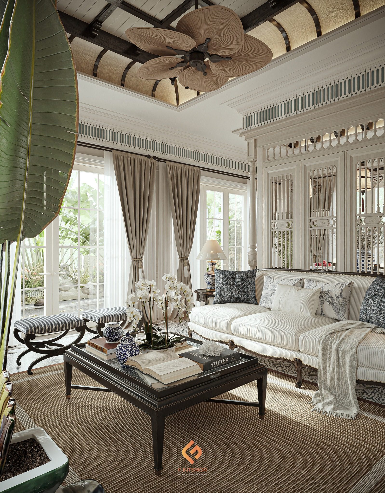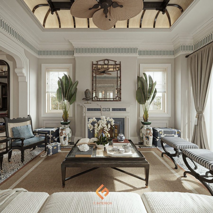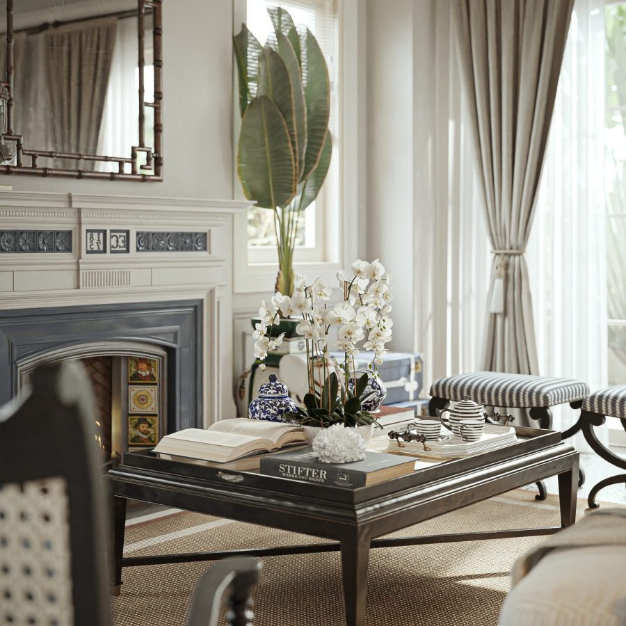 Classic and Cozy Living Room Design with Fireplace_109076170