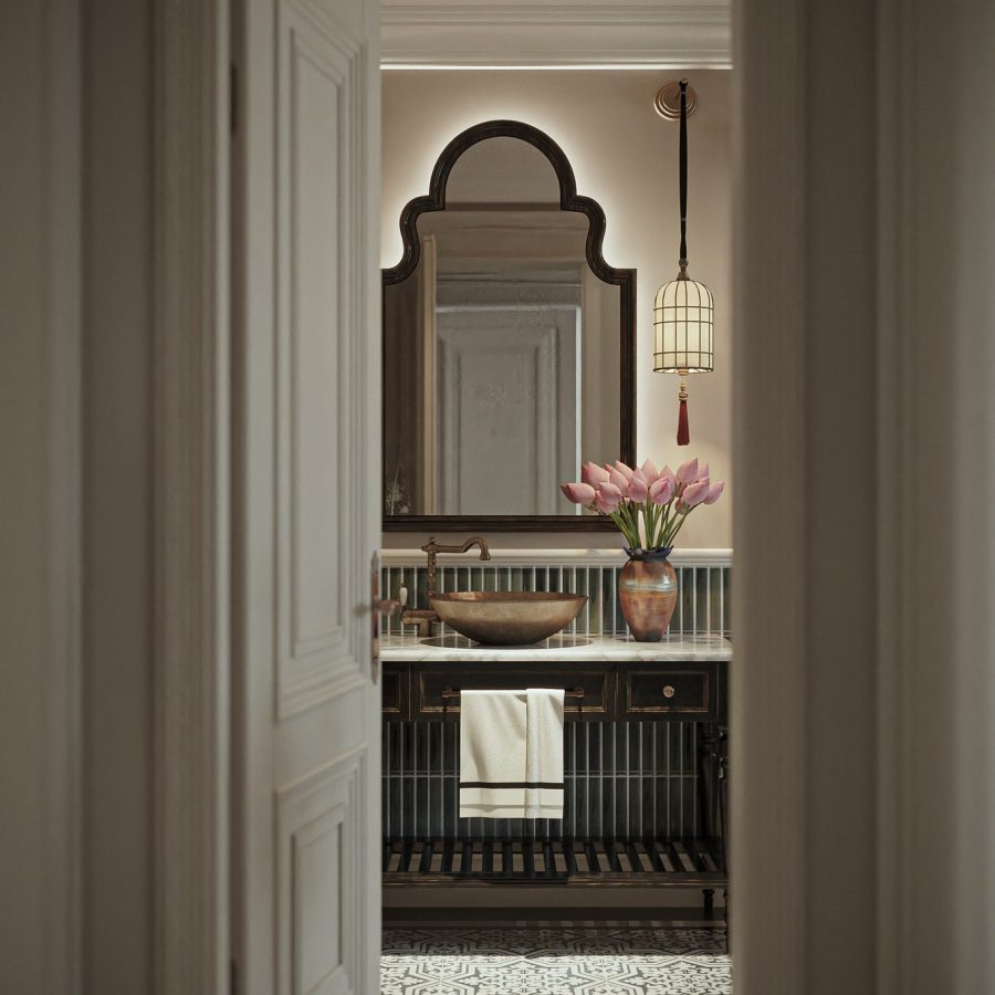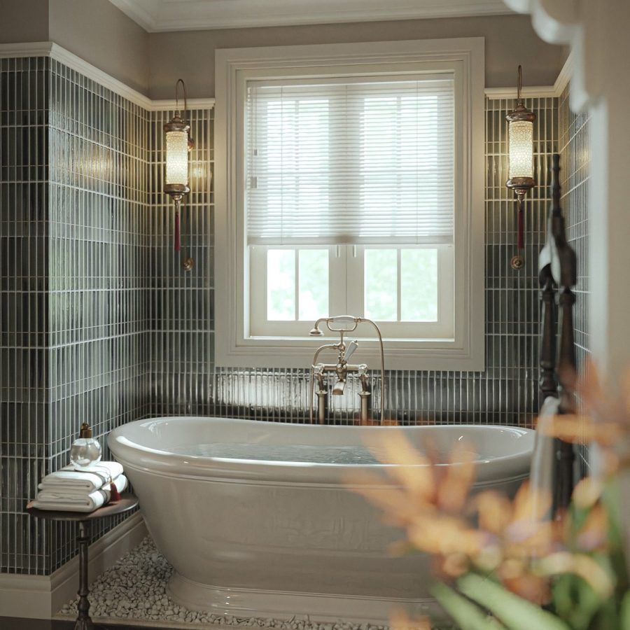 Modern Bathroom with Bathtub and Laundry Area – 3D Model_IDC593643406