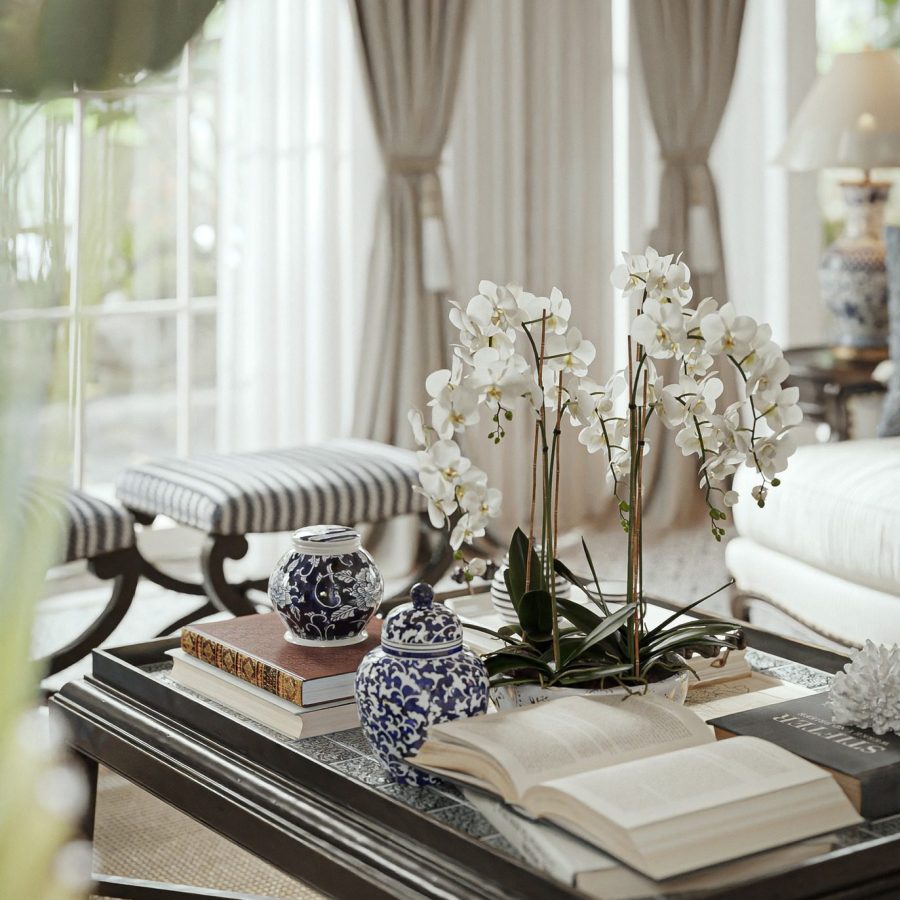 Luxury Modern Living Room with Marble Coffee Table and Black Sofa Set – 3D Model_IDC1118107877