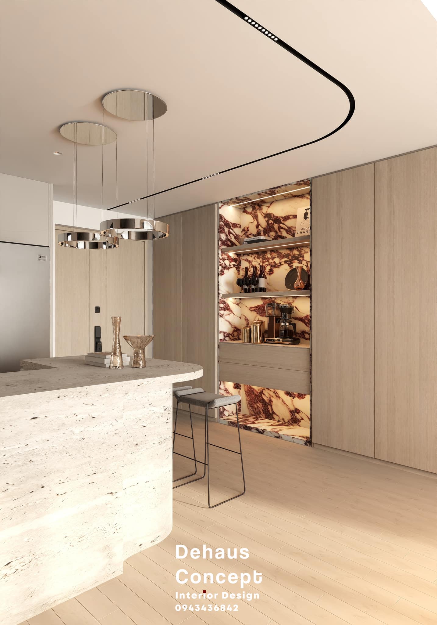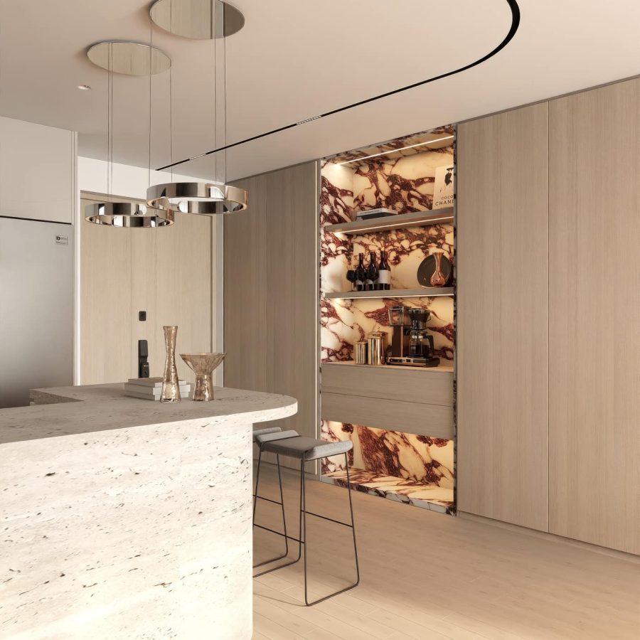 Modern Luxury Bar Design with Floating Shelves_107766487