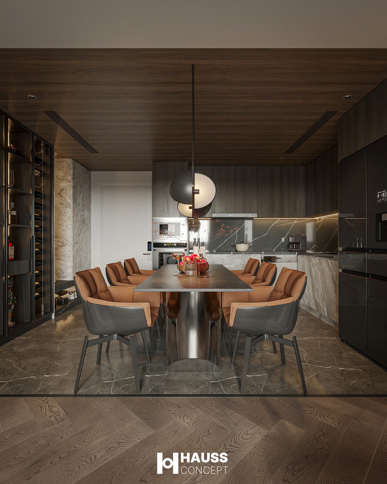3Ds Max Living Room – Kitchen Interior Model Download by Cao Huy Hoang