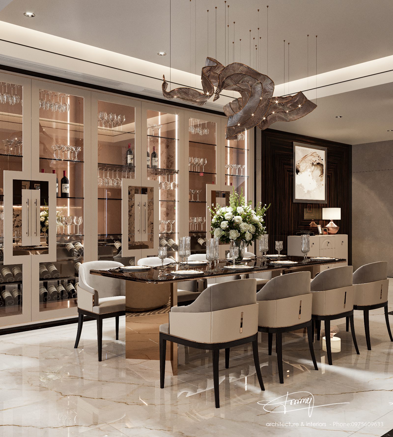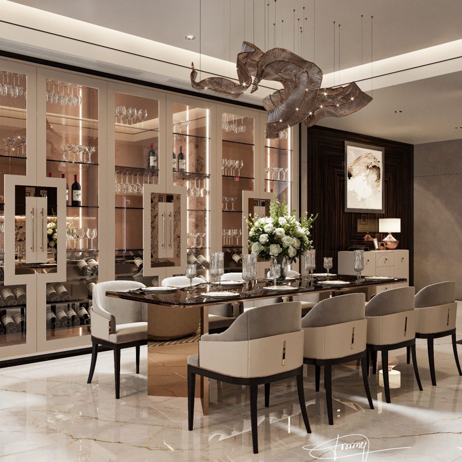 Asian Style Luxury Dining Room with Round Table and Wall Art – 3D Model_HCI4803719917259