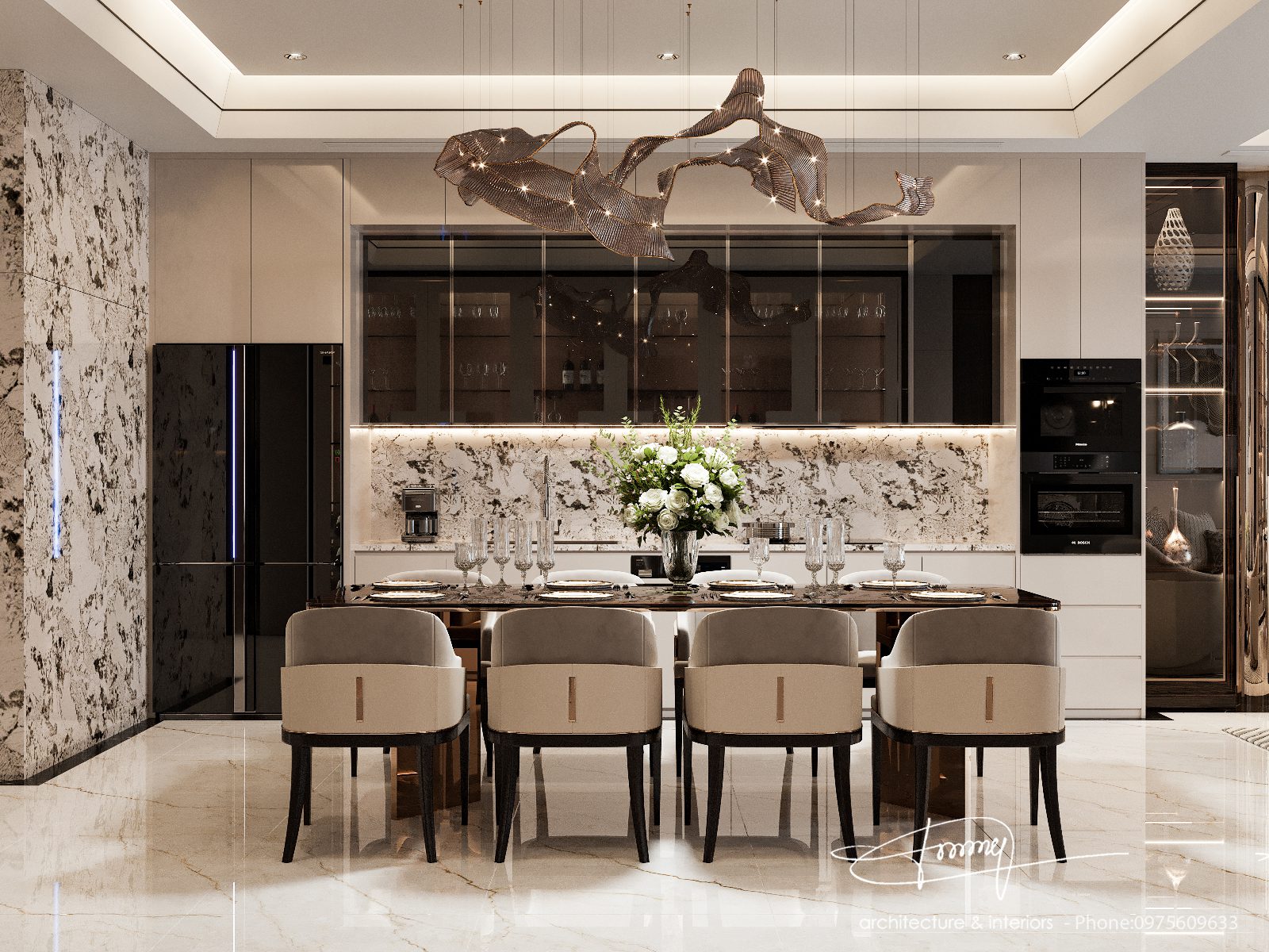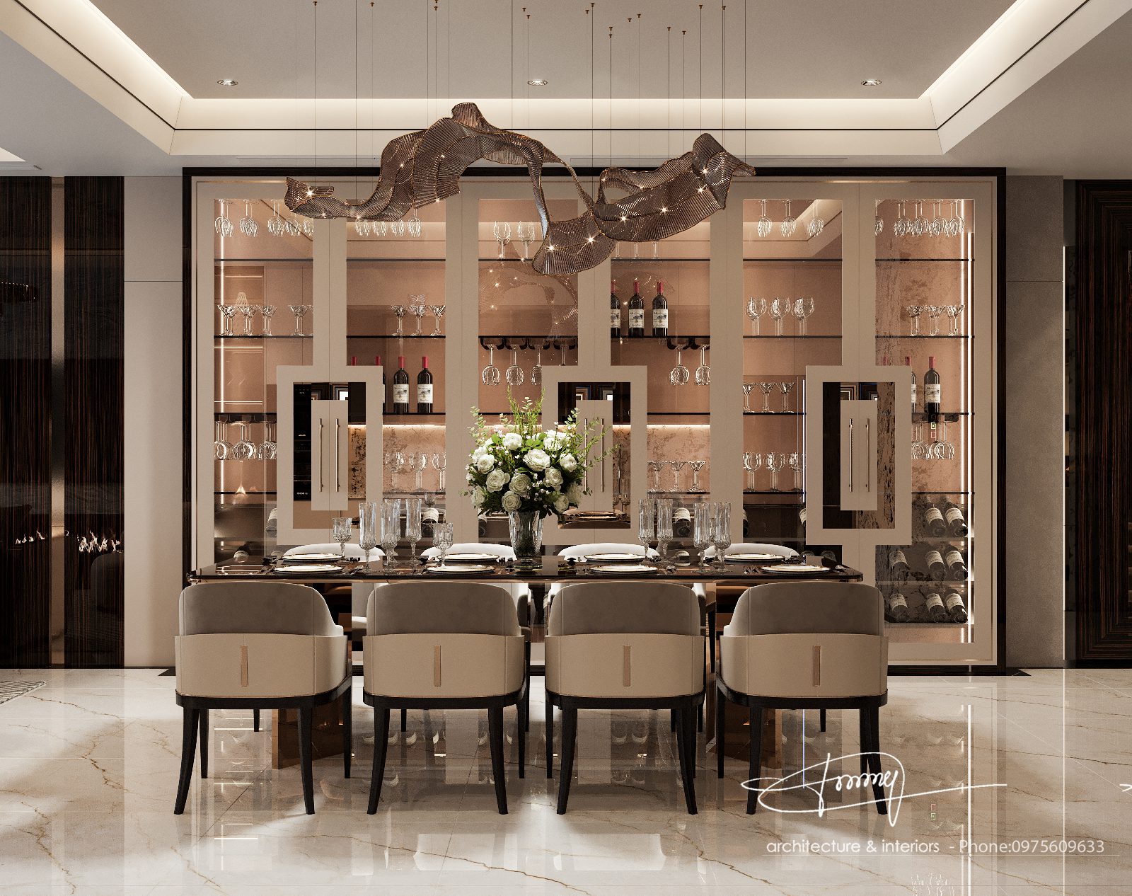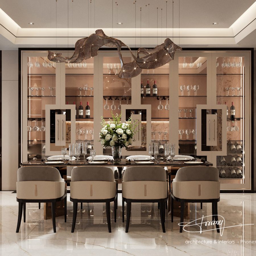 Modern Luxury Bar Design with Floating Shelves_107766487