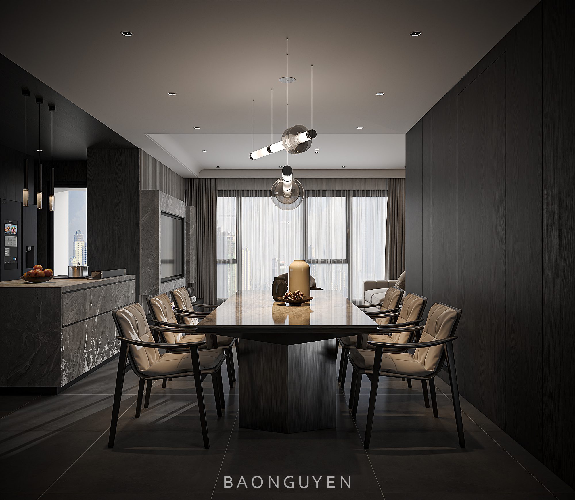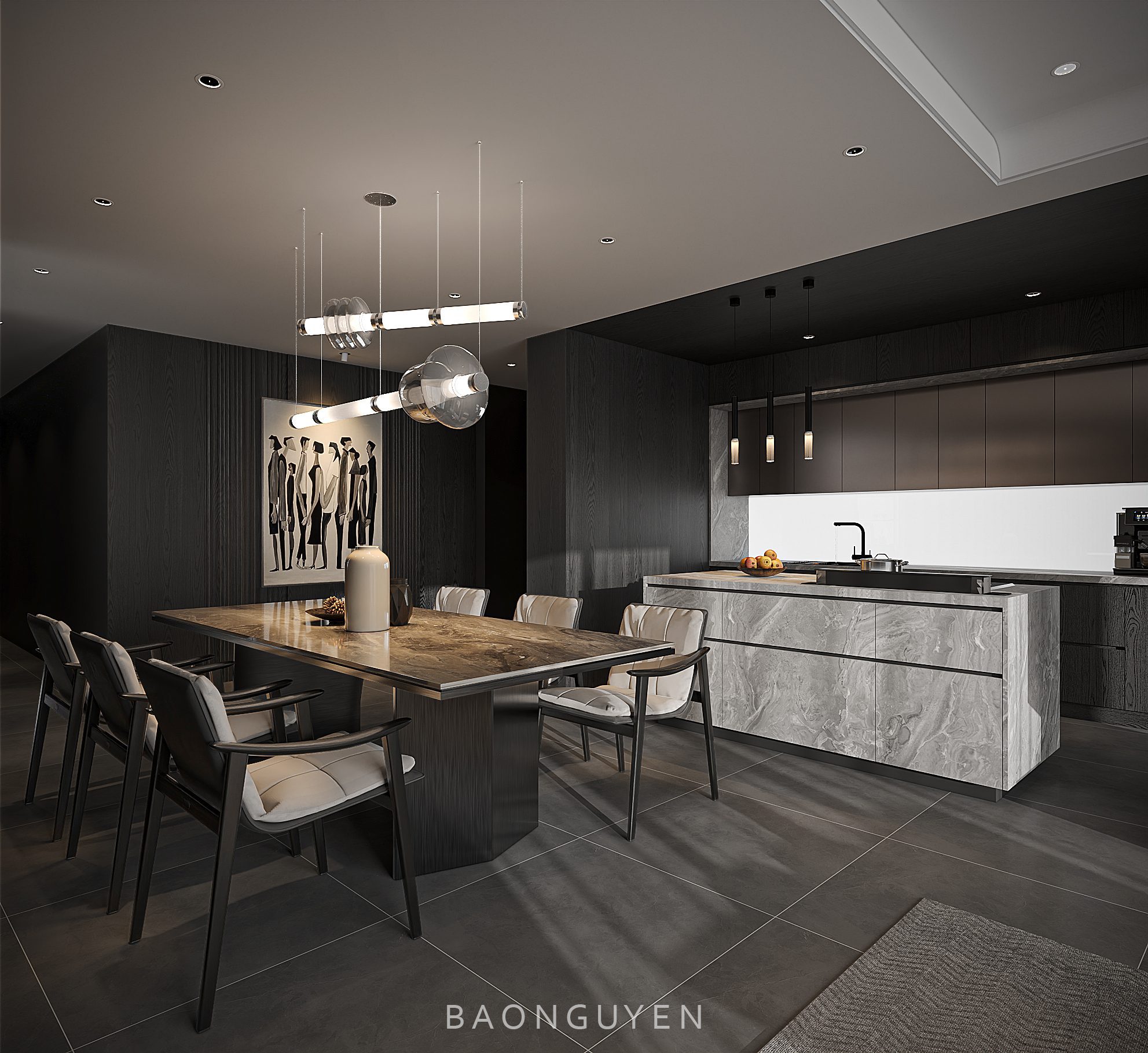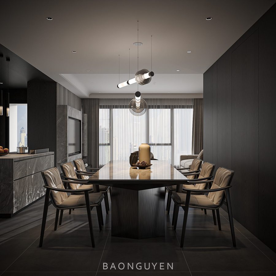 Modern Dining Room with Marble Table -3ds Max Model_1140388694
