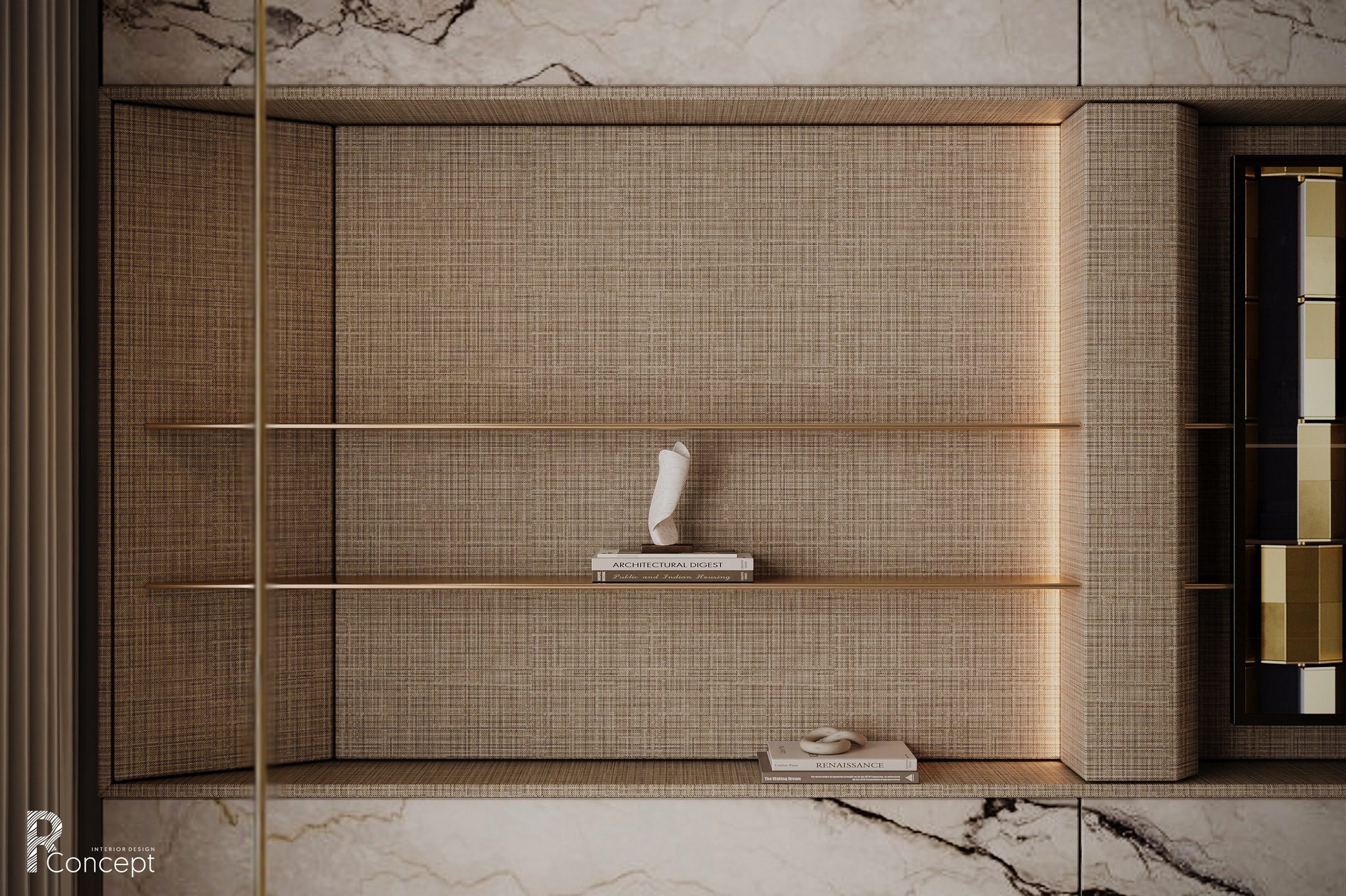 Modern Luxury Bar Design with Floating Shelves_107766487
