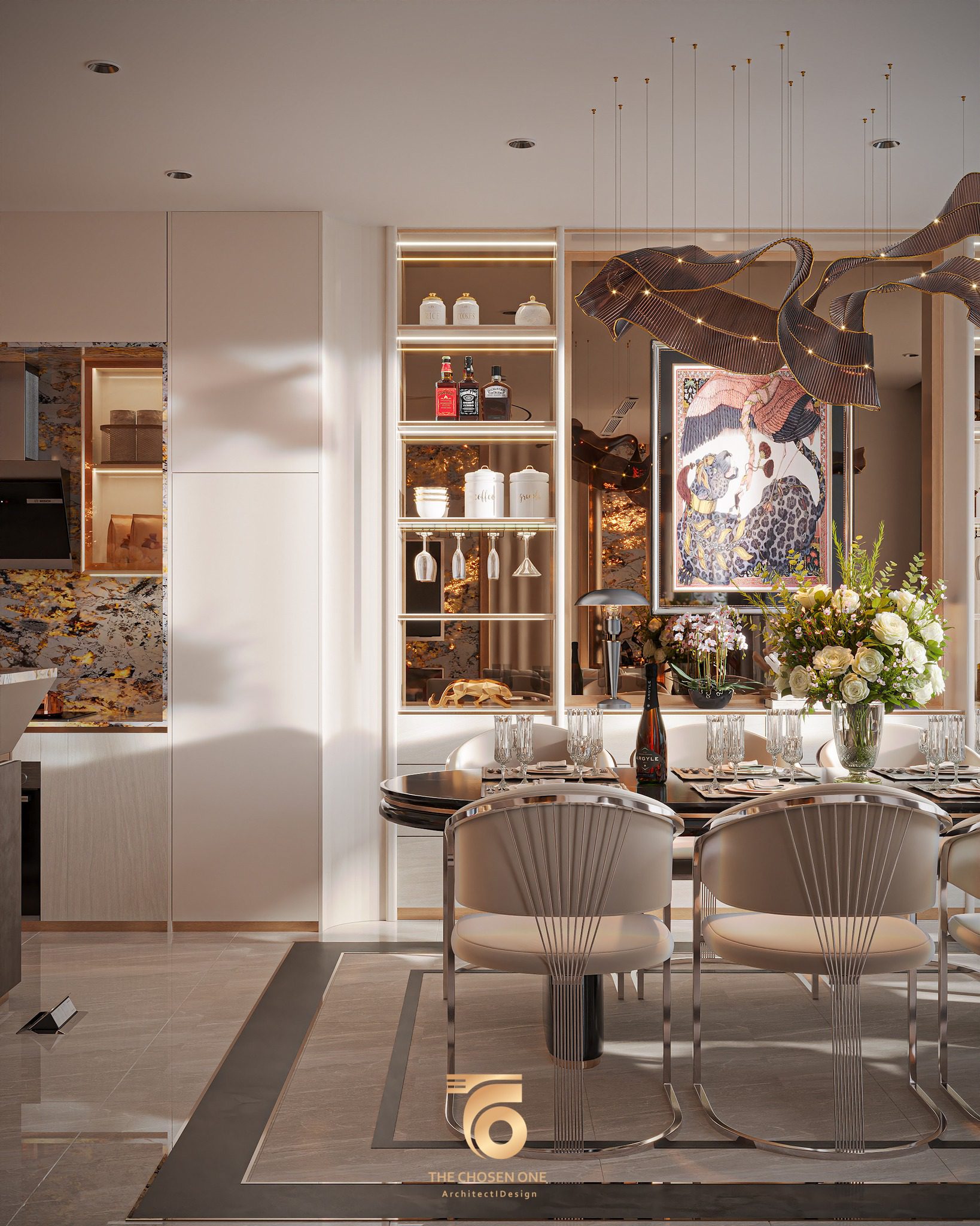Luxury Modern Bar Interior with Golden Canopy_105012893