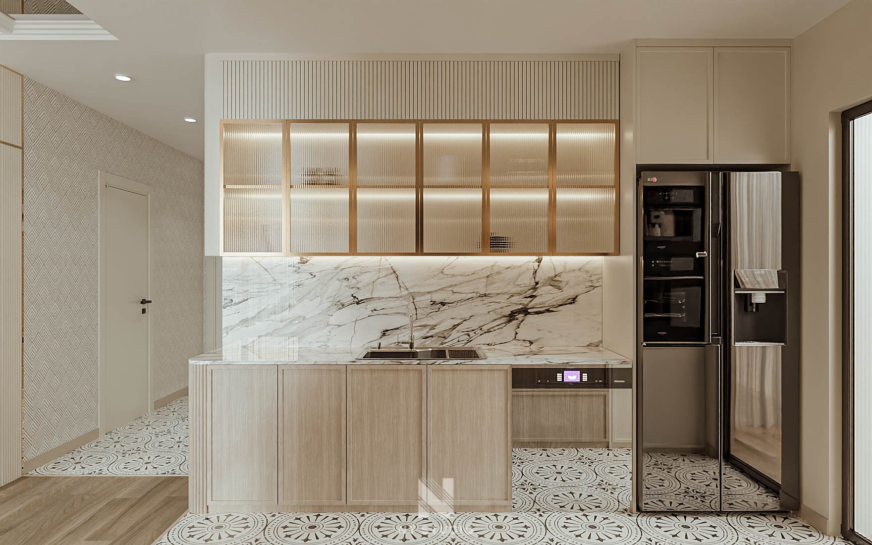 Golden Marble Wall Texture with Lighting Effect_HCI4803715187543