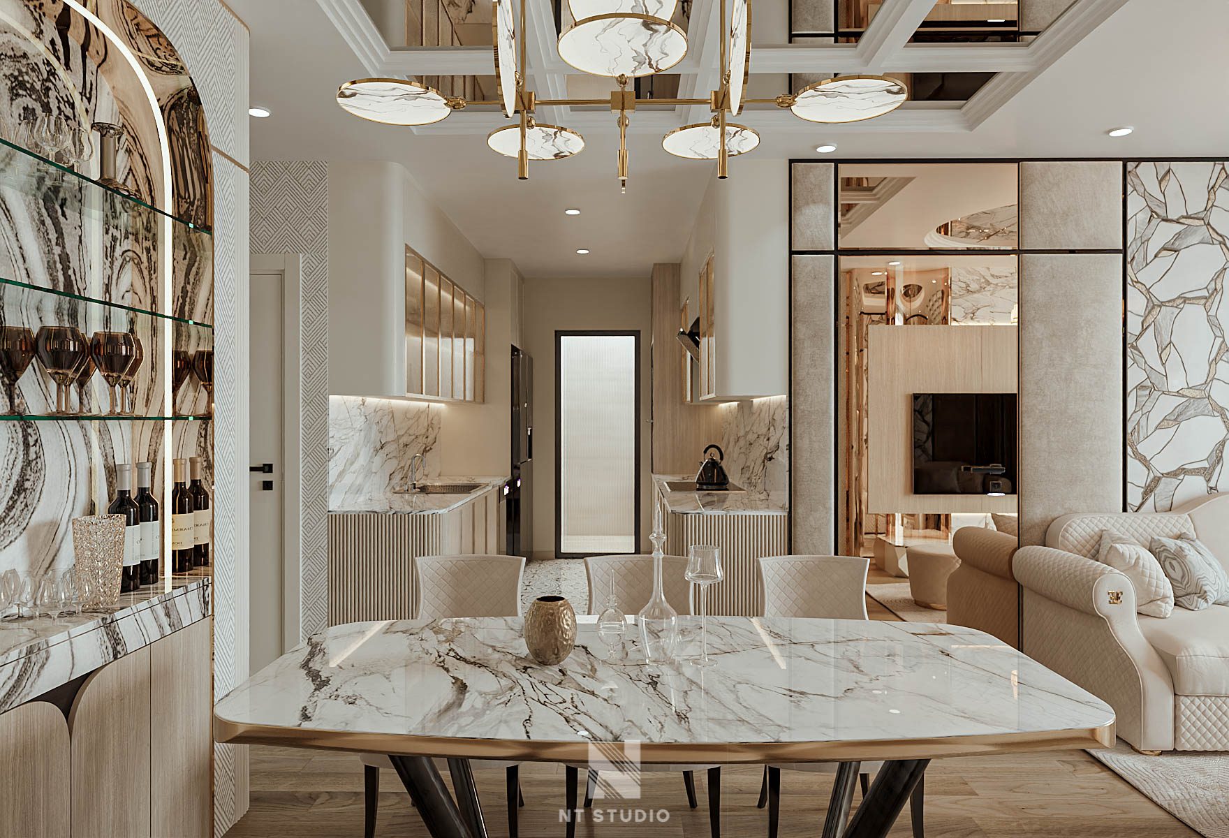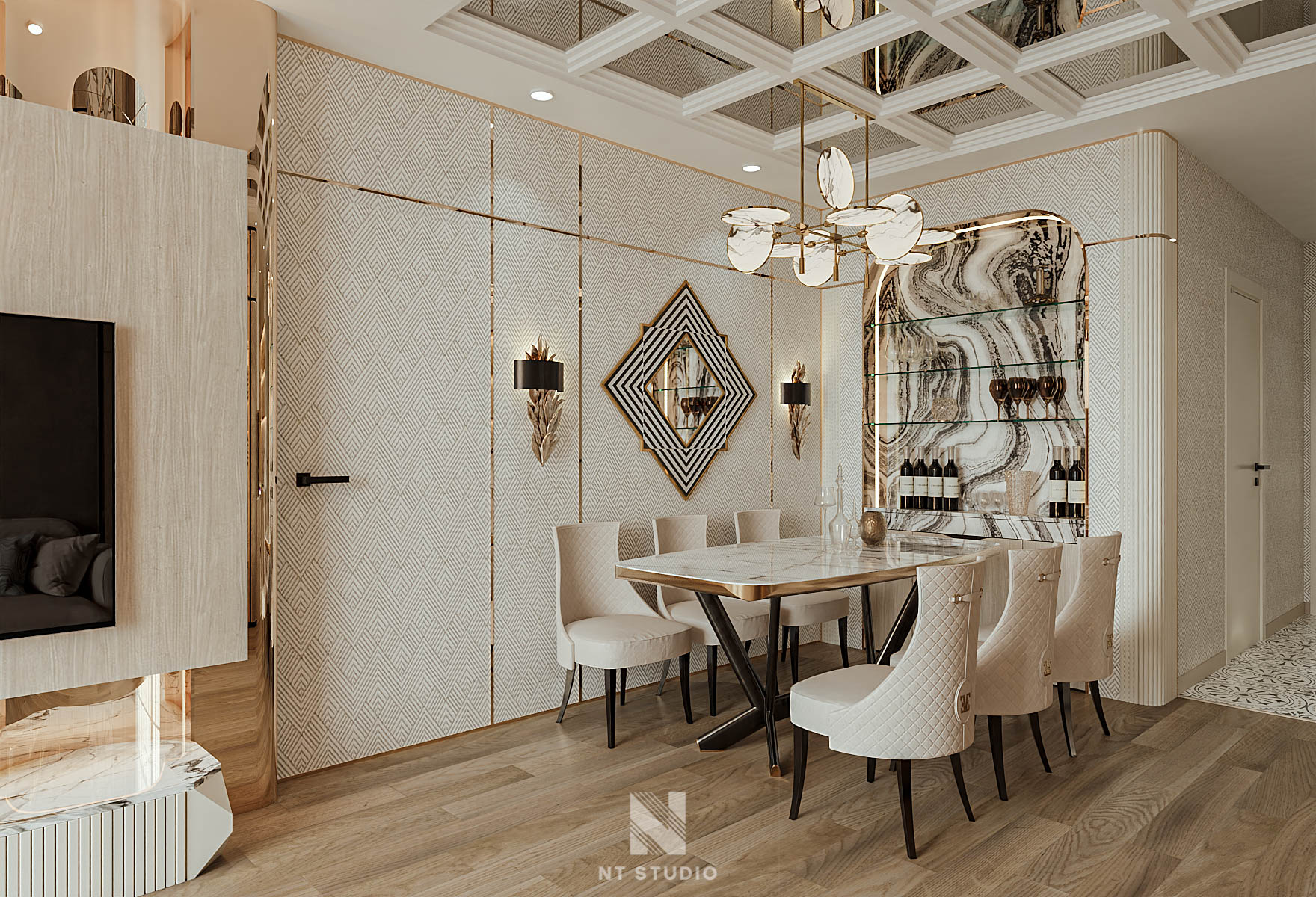 Modern Dining Room with Marble Table -3ds Max Model_1140388694