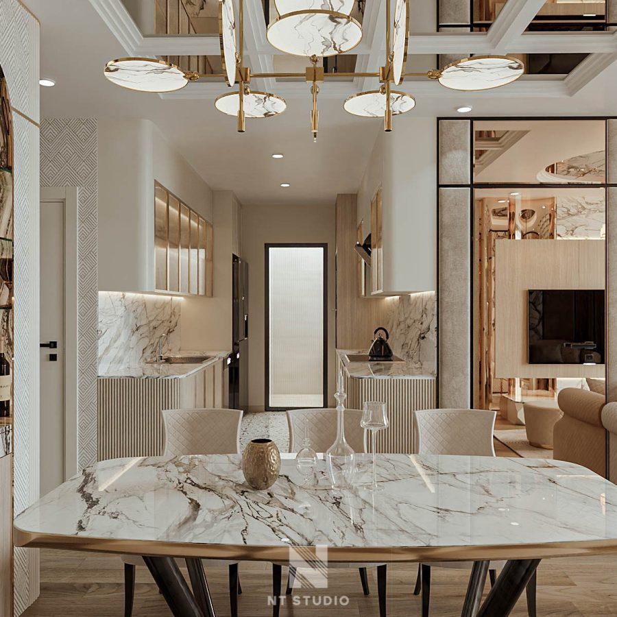 Modern Dining Room with Marble Table – 3ds Max Model_1162182258