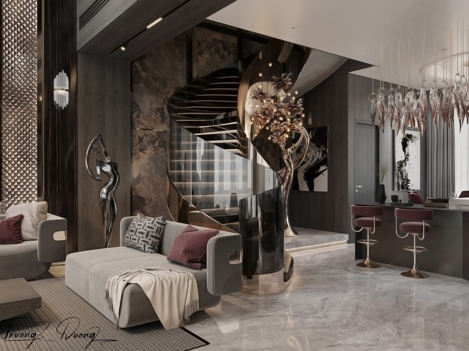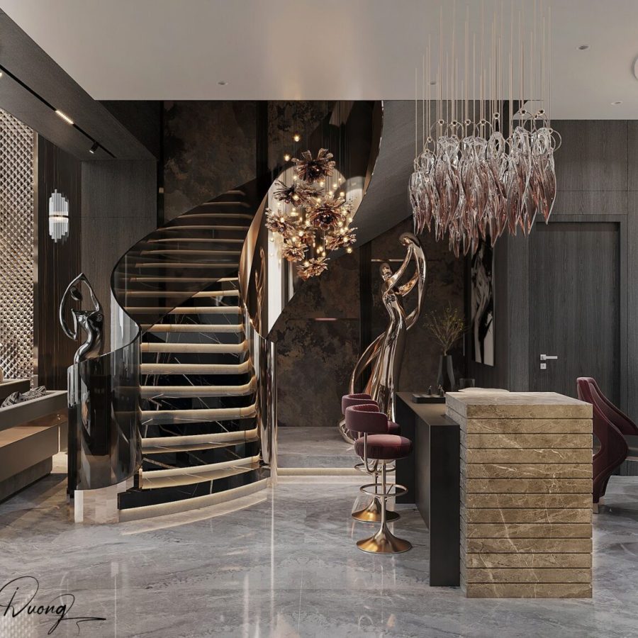 Luxury Modern Bar Interior with Golden Canopy_105012893