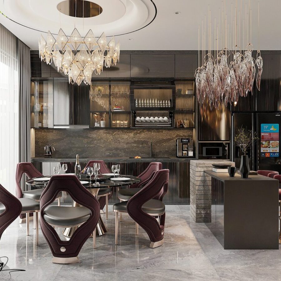 Modern Dining Room with Marble Table – 3ds Max Model_1162182258