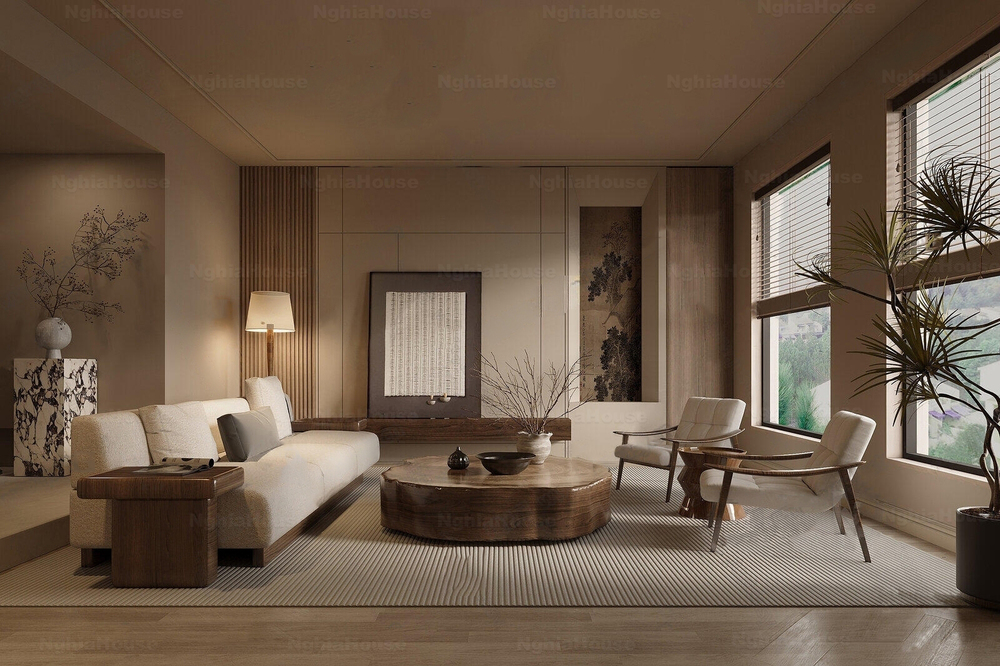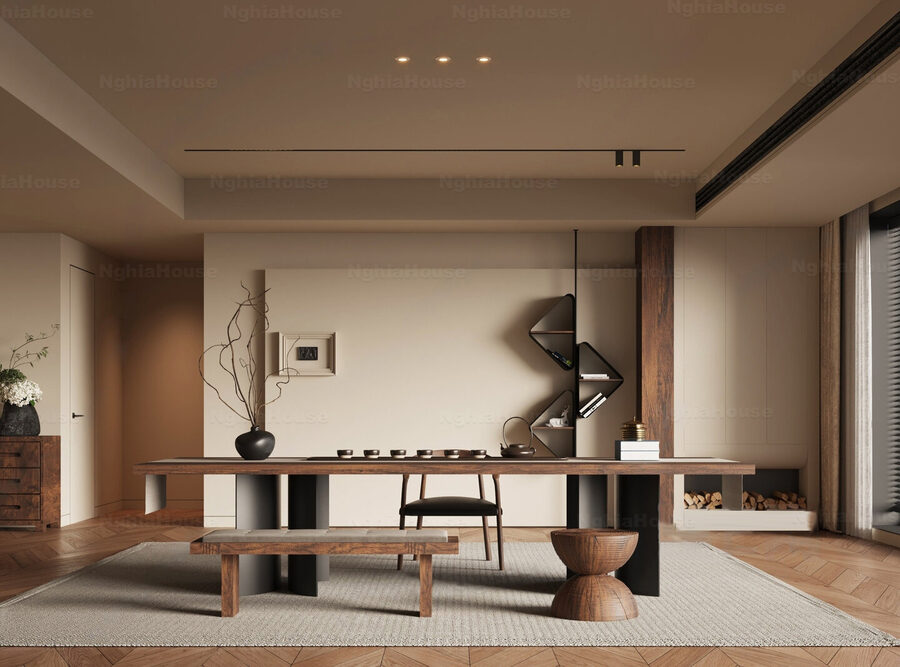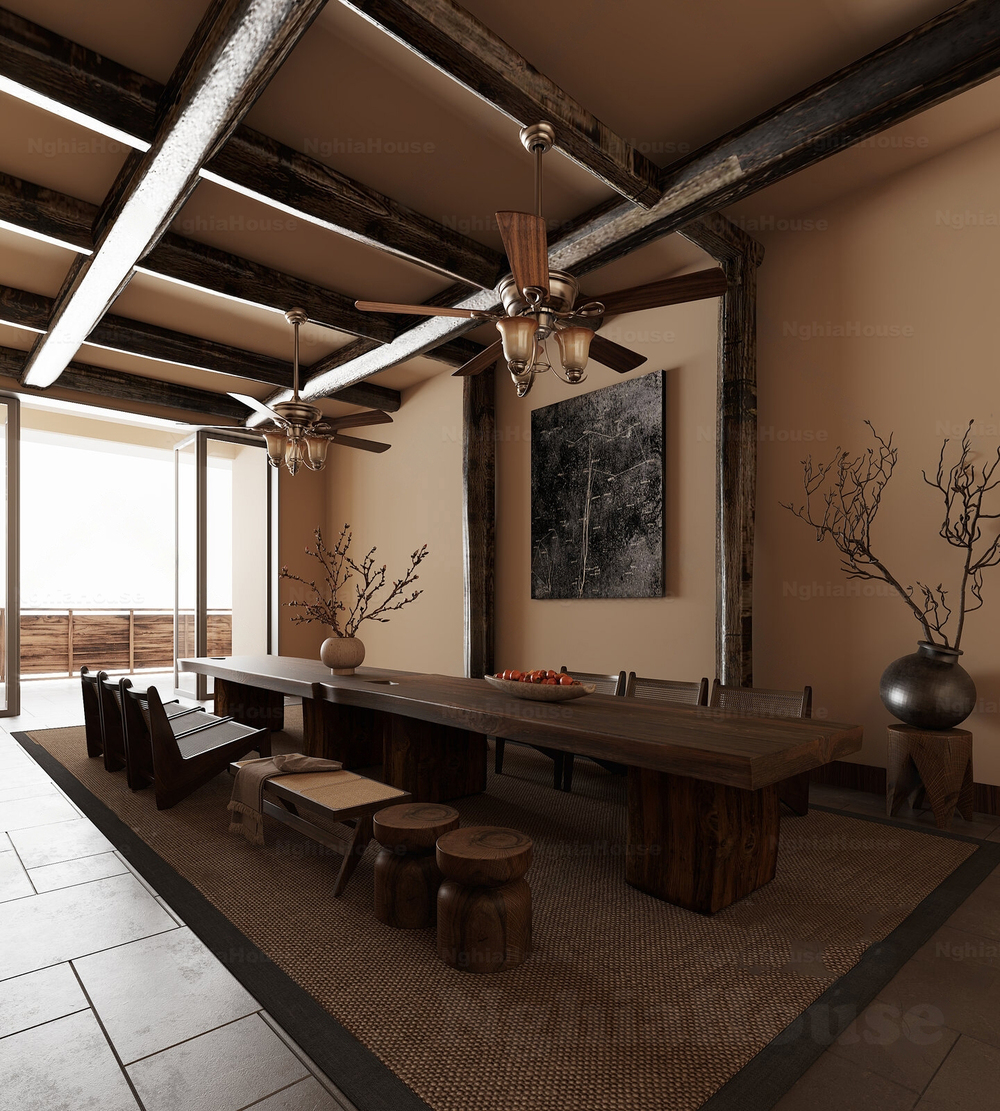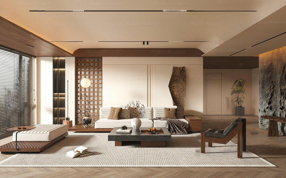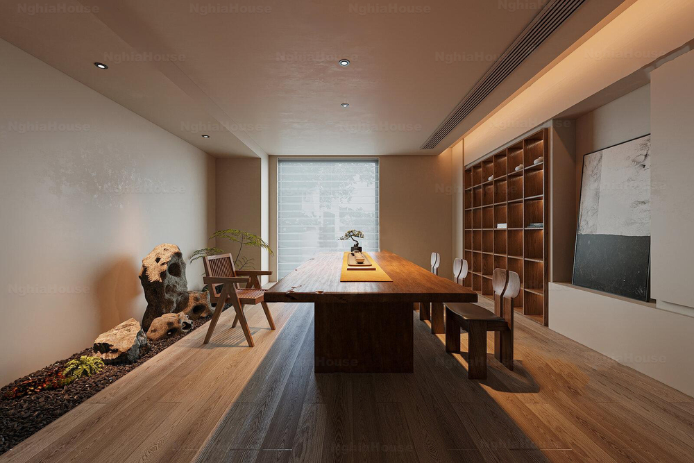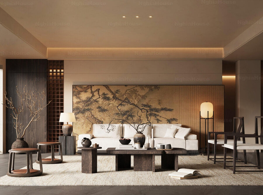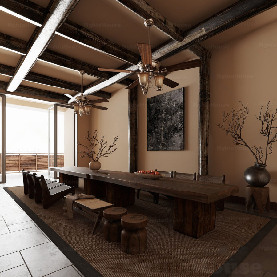 Free 3D Model Japanese Zen Garden Interior with Bonsai and Stone Statues_110845037