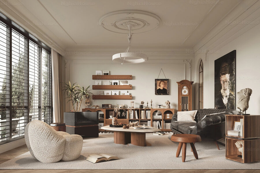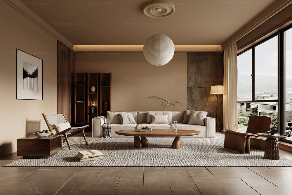 Classic and Cozy Living Room Design with Fireplace_109076170