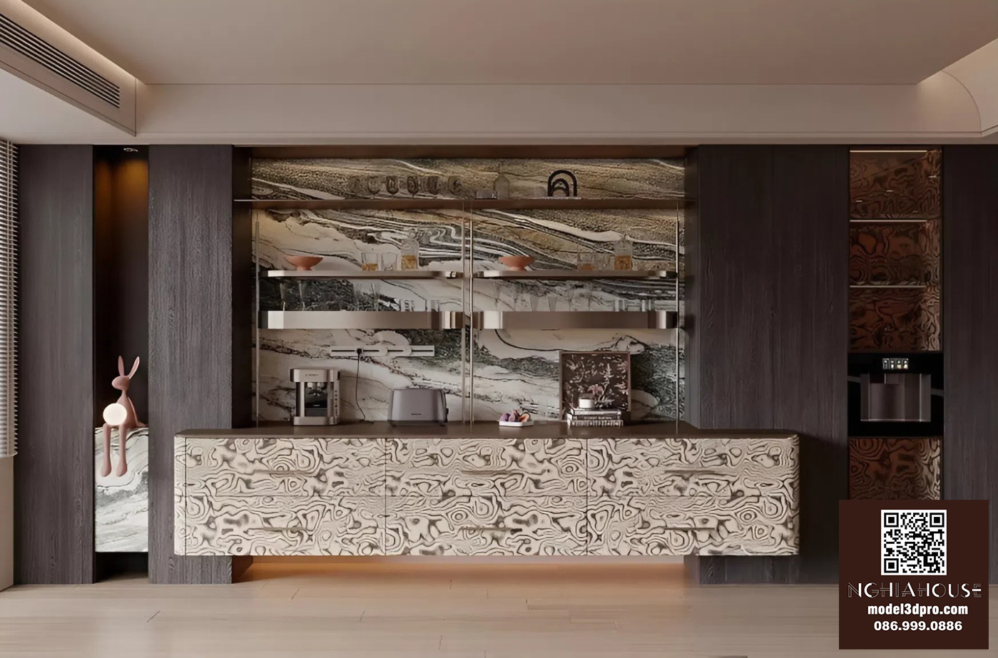3D Model Modern Mini Bar Cabinet with Decorative Shelf_HJI4803716503626