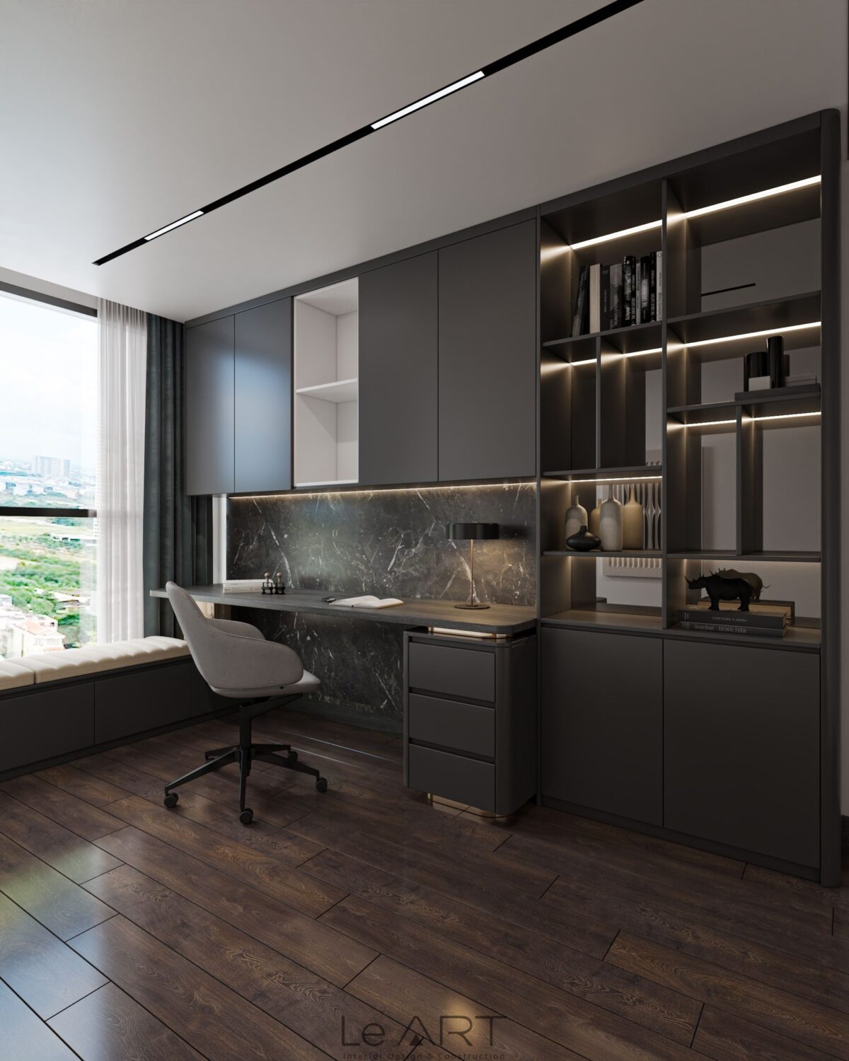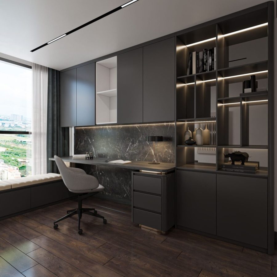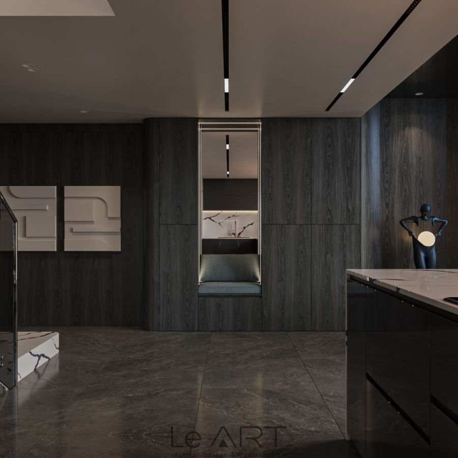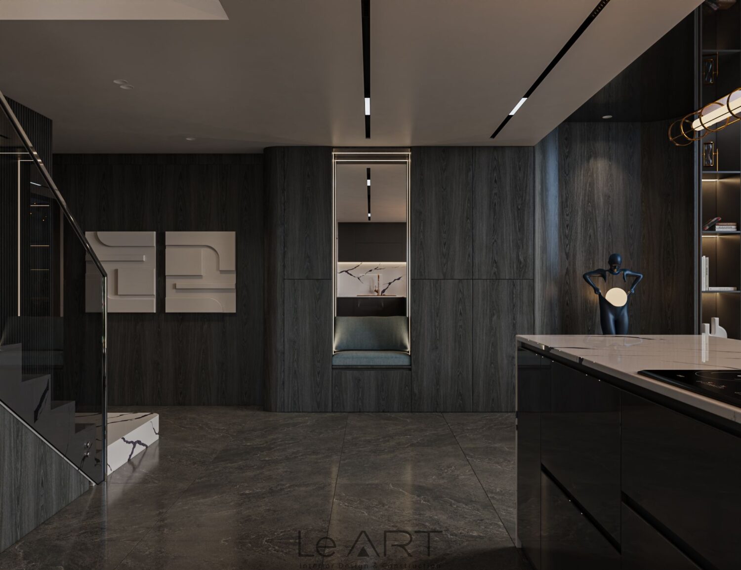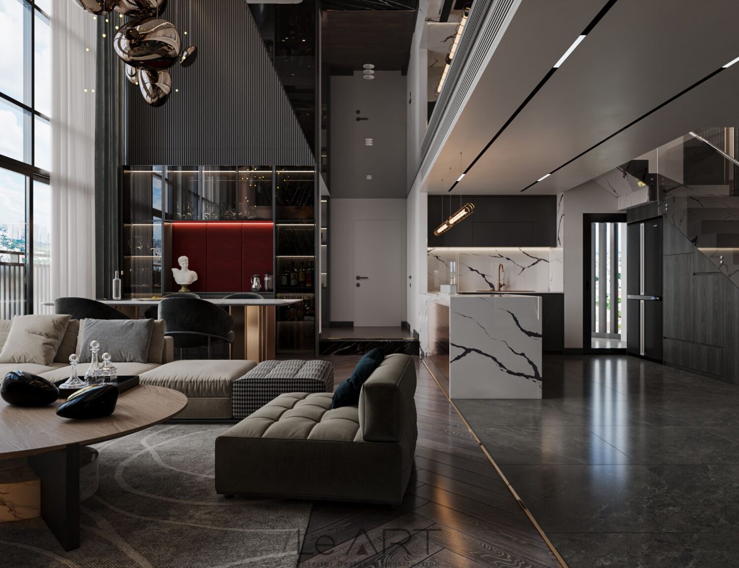 Luxury Modern Living Room with Marble Coffee Table and Black Sofa Set – 3D Model_IDC1117421308