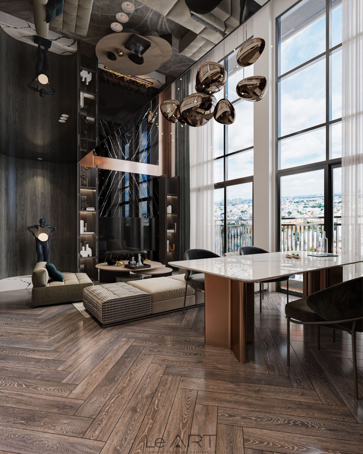 Modern Asian Style Dining Room with Artistic Ceiling Decoration_HJI4803711881809