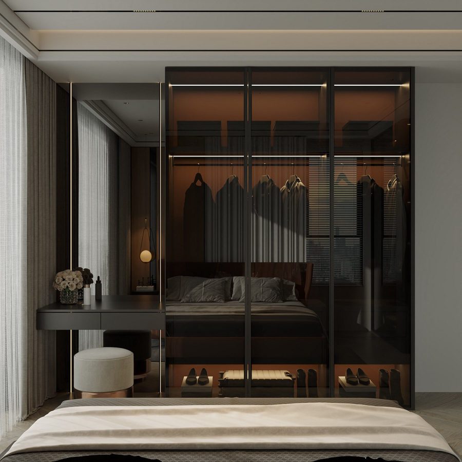 3D Luxury Walk-in Closet Interior – Modern Dressing Room Design_106914533