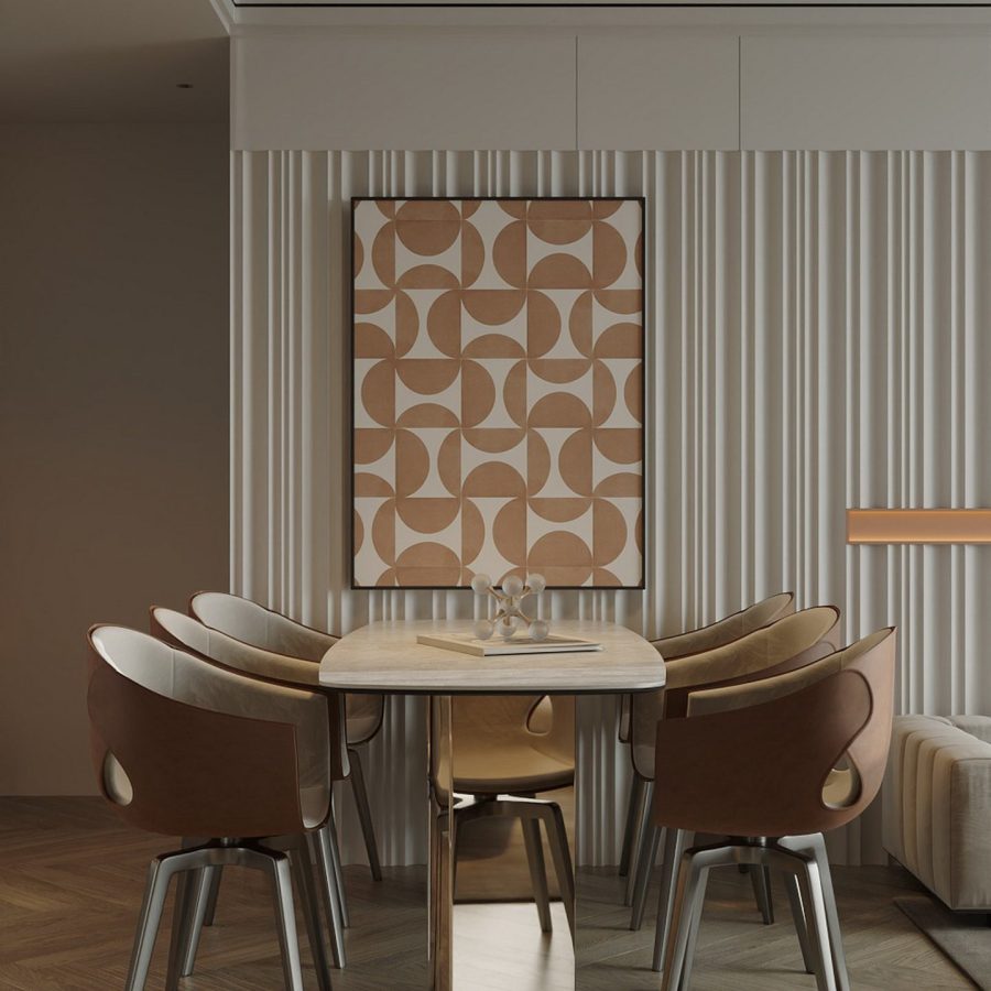 Asian Style Luxury Dining Room with Round Table and Wall Art – 3D Model_HCI4803719917259