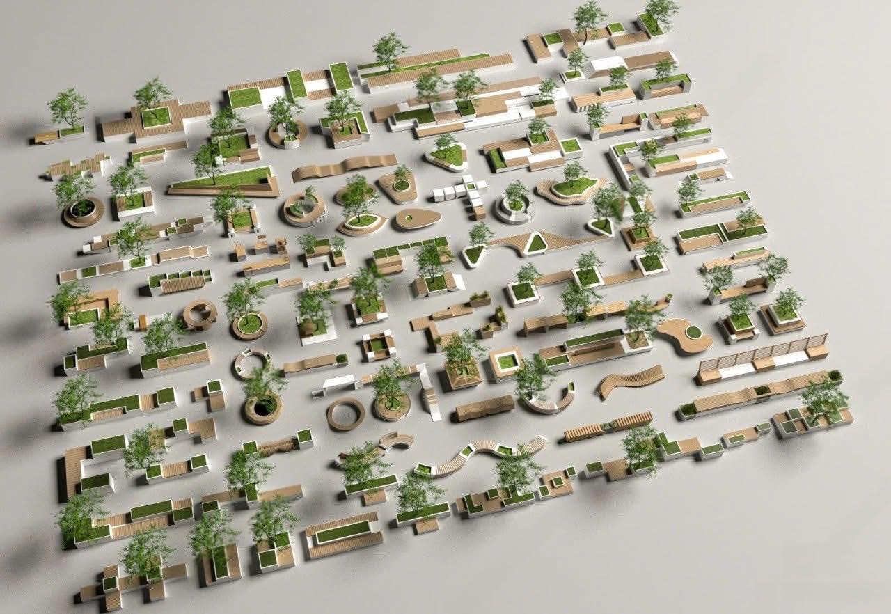 Free SketchUp Outdoor Bench & Planter Set – Modern Urban Landscape 3D Model1004