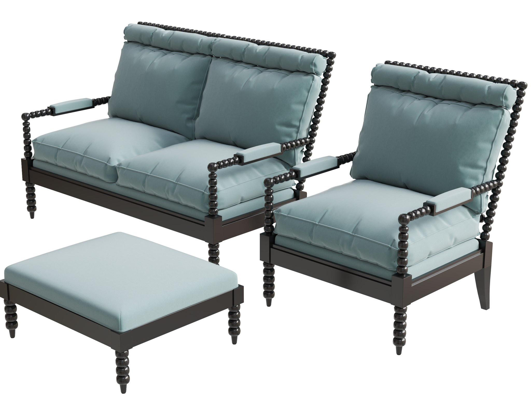 Luxury Modern Living Room with Marble Coffee Table and Black Sofa Set – 3D Model_IDC1117421308