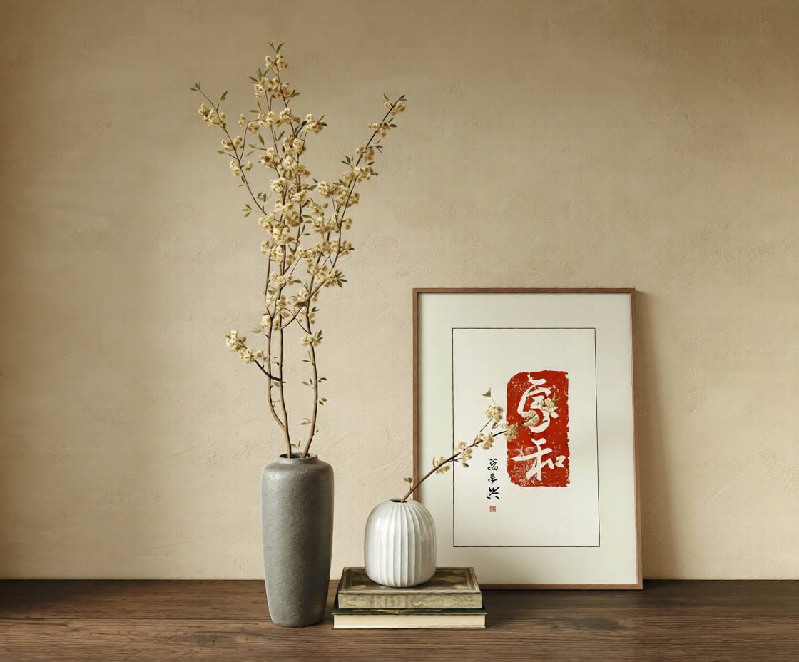 Asian Style Wall Art and Decorative Console Table_101474081