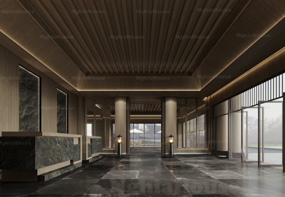 3D Model Asian Style Console Table Interior with Decorative Partition_107767822