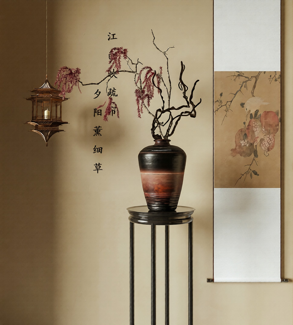 Modern Asian Style Dining Room with Artistic Ceiling Decoration_HJI4803711881809