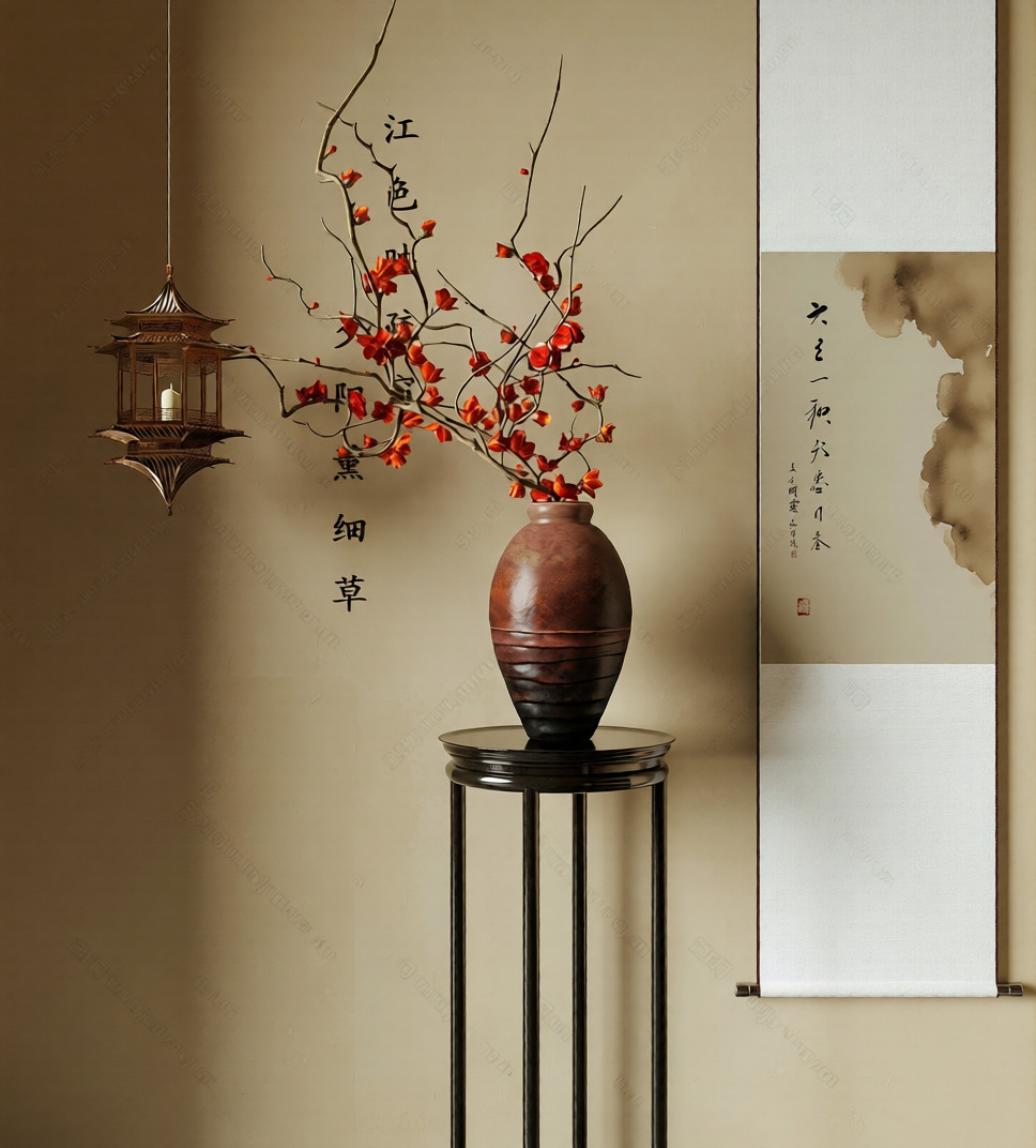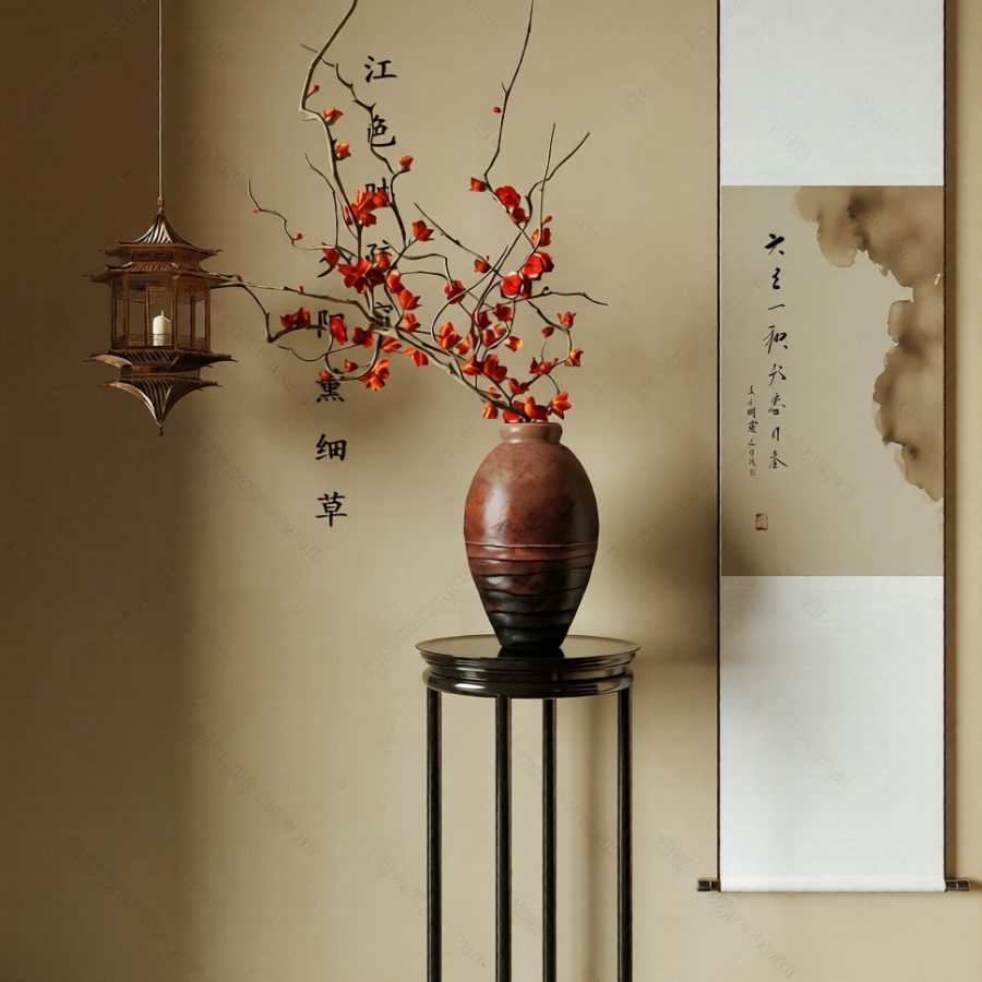 3D Model Asian Style Console Table Interior with Decorative Partition_107767822