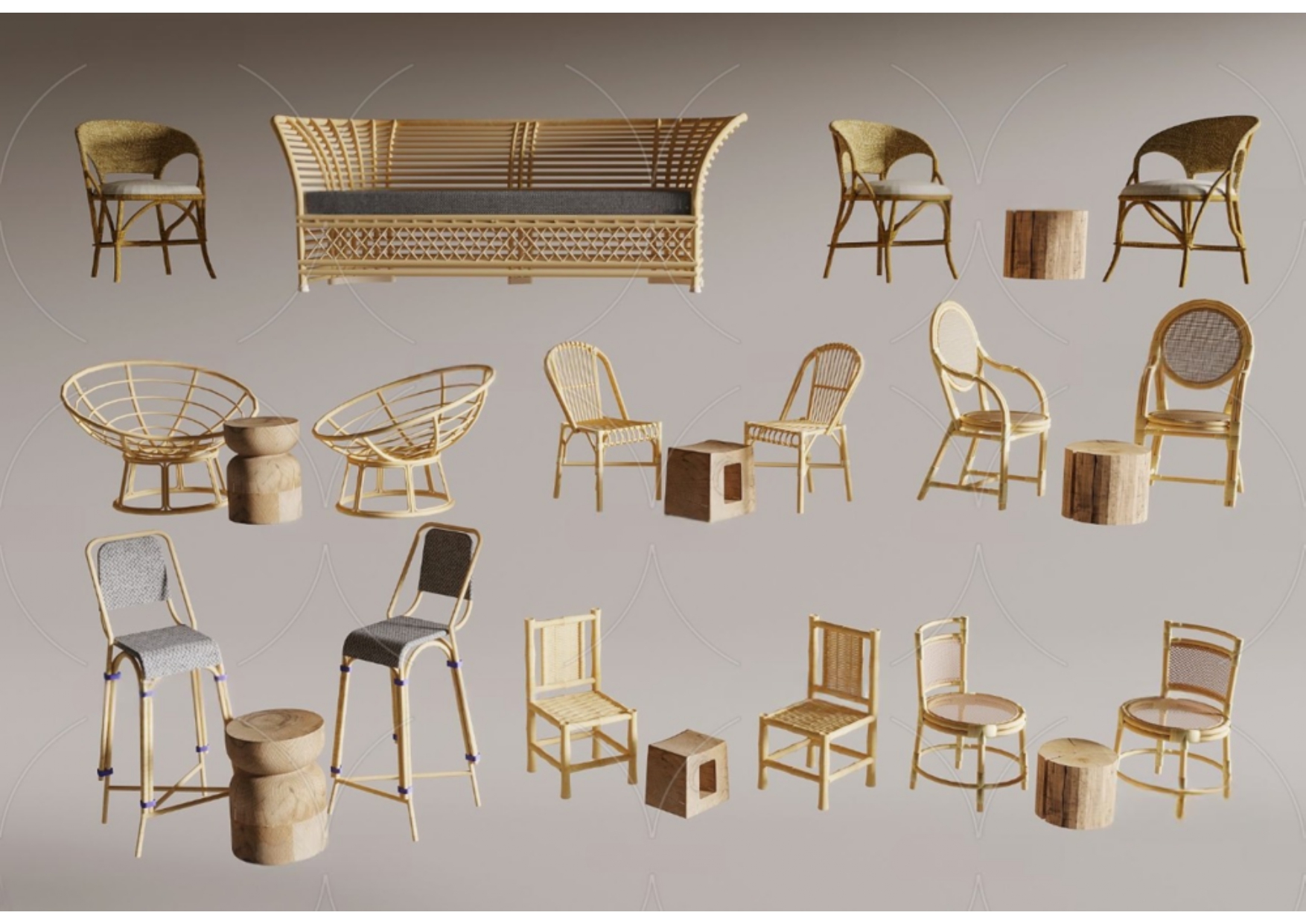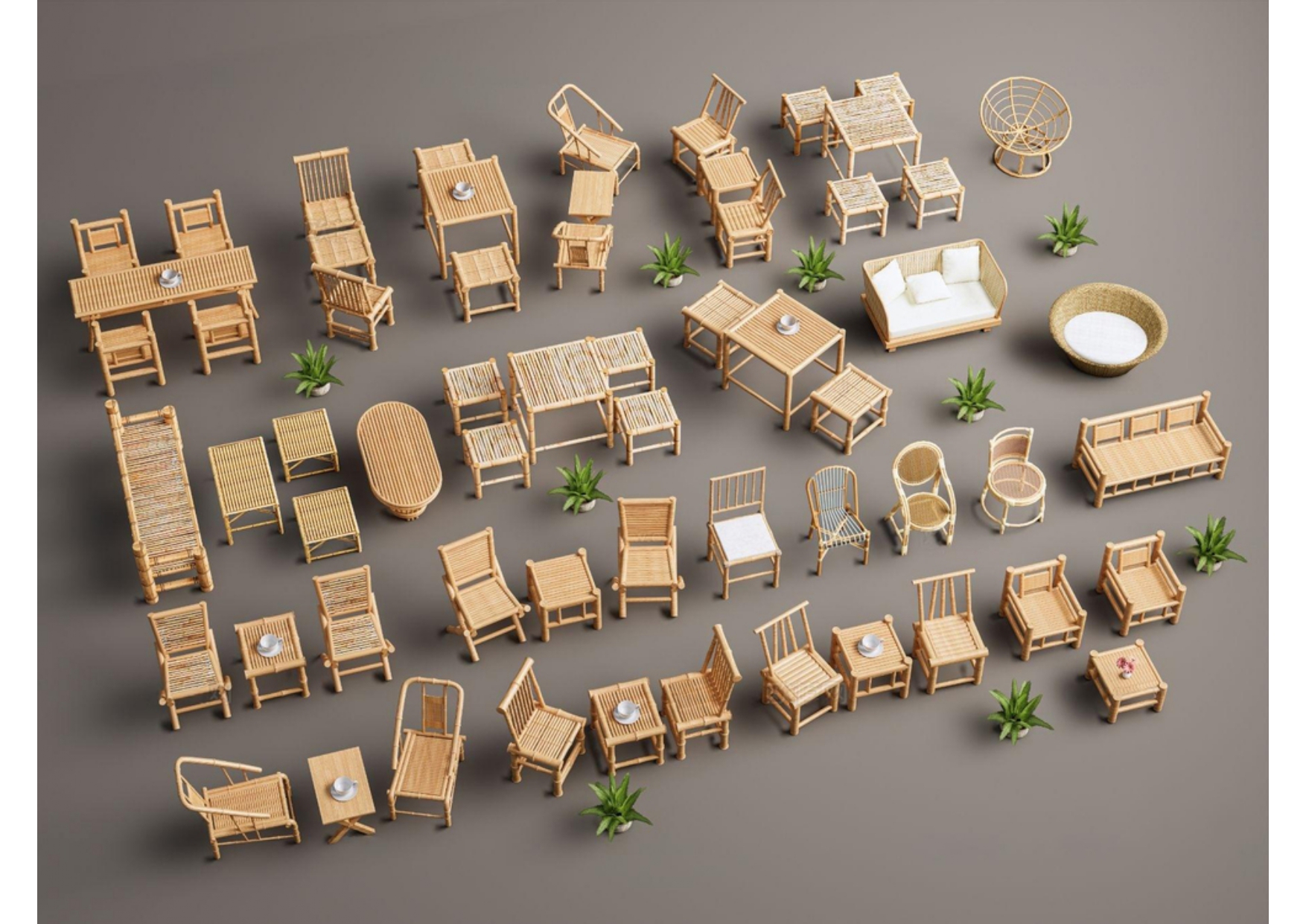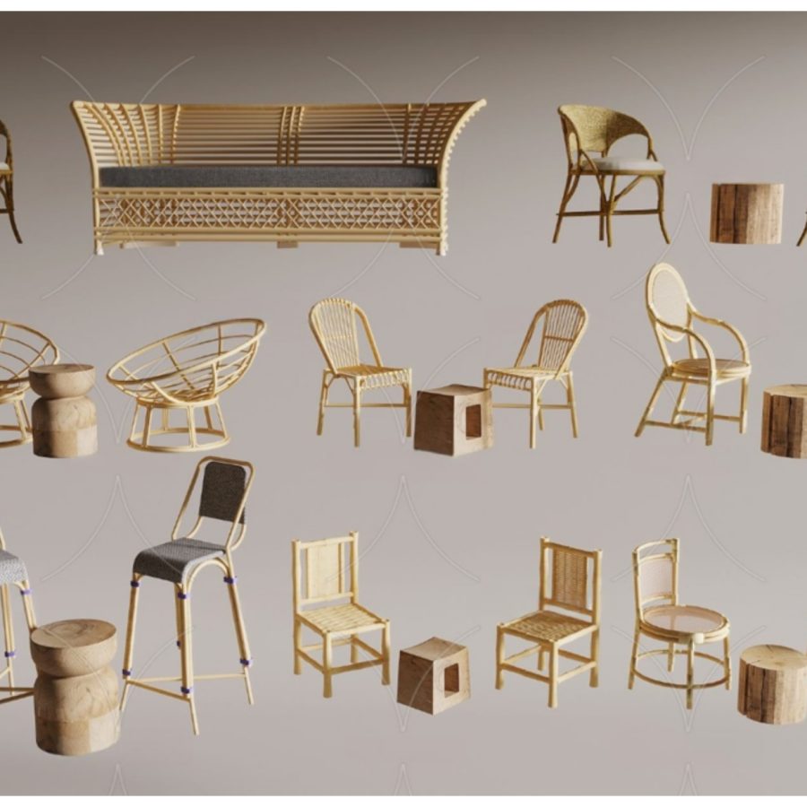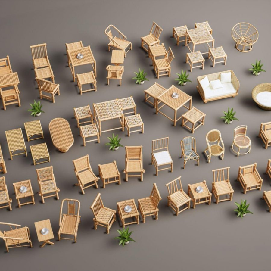 Set 30 Model 3dsmax Rattan Bamboo Furniture Models – Interior Decor Collection N270