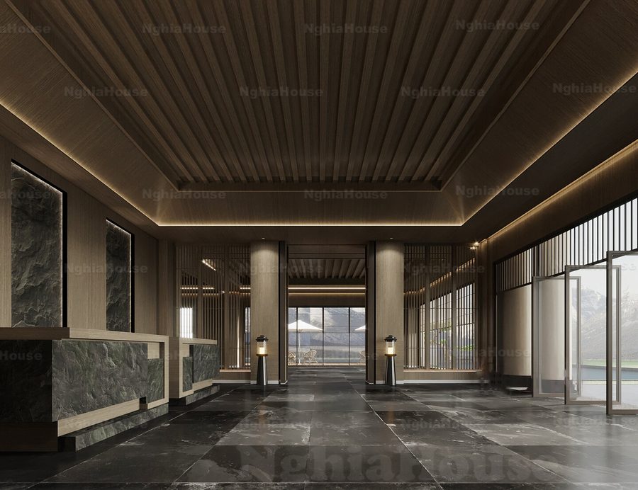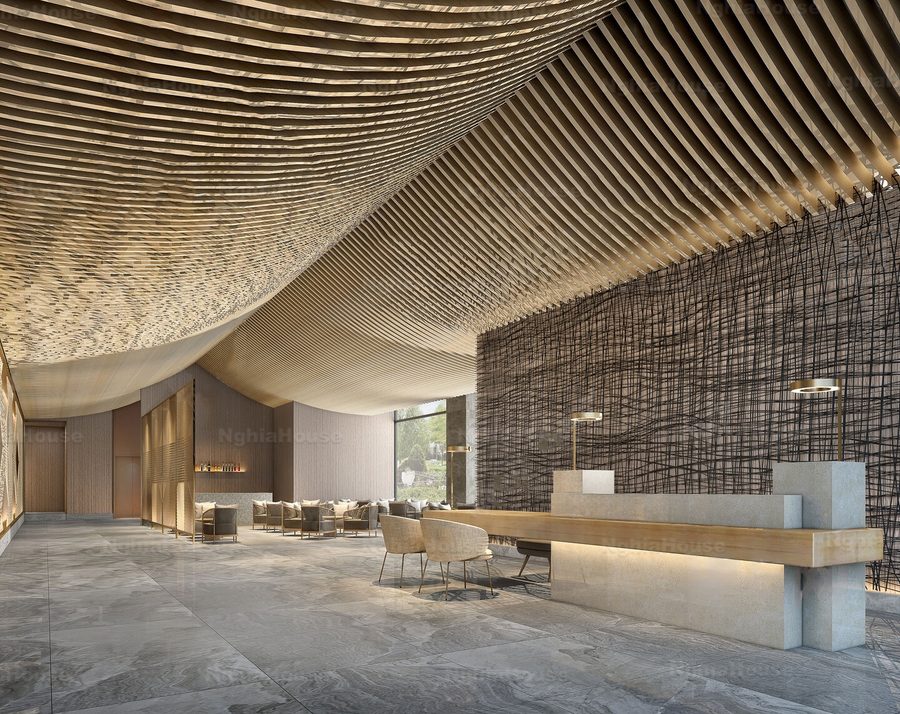 3D Model Asian Style Console Table Interior with Decorative Partition_107767822