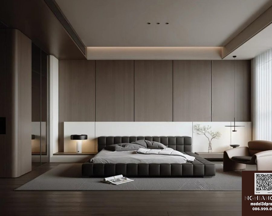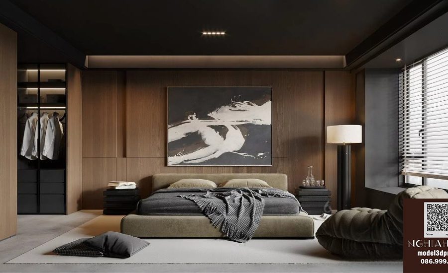 Luxury Modern Living Room with Marble Coffee Table and Black Sofa Set – 3D Model_IDC1118107877