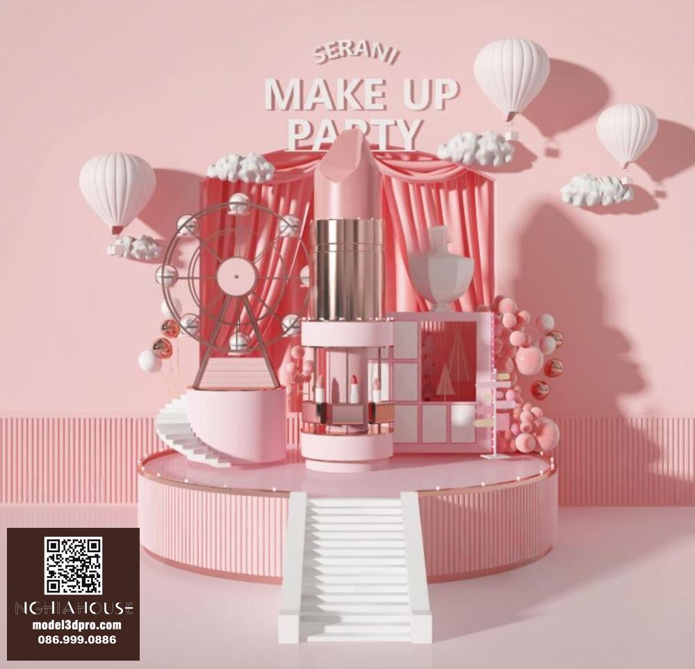 3D Model Modern Mini Bar Cabinet with Decorative Shelf_HJI4803716503626