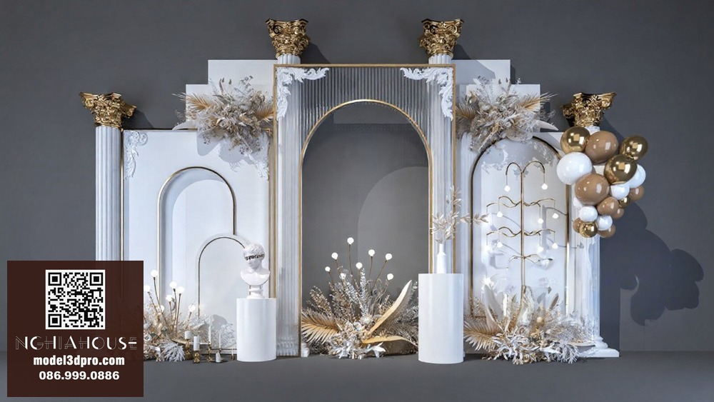 Luxury Marble and Metal Wall Panel Set – 3D Model_102195636