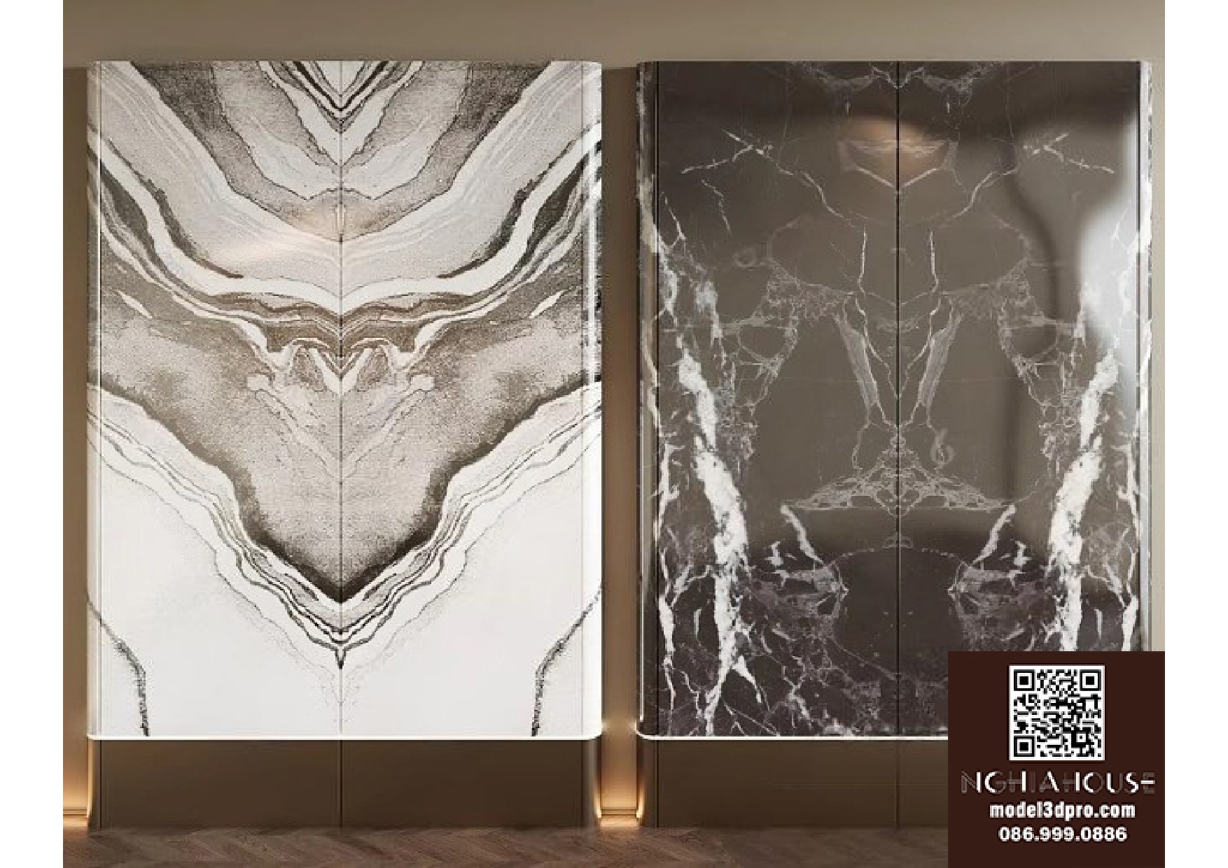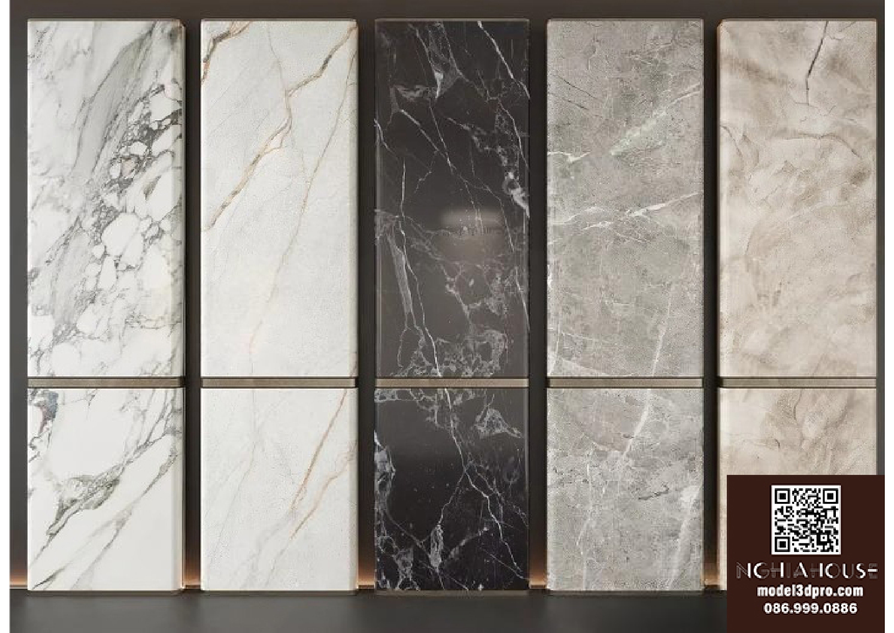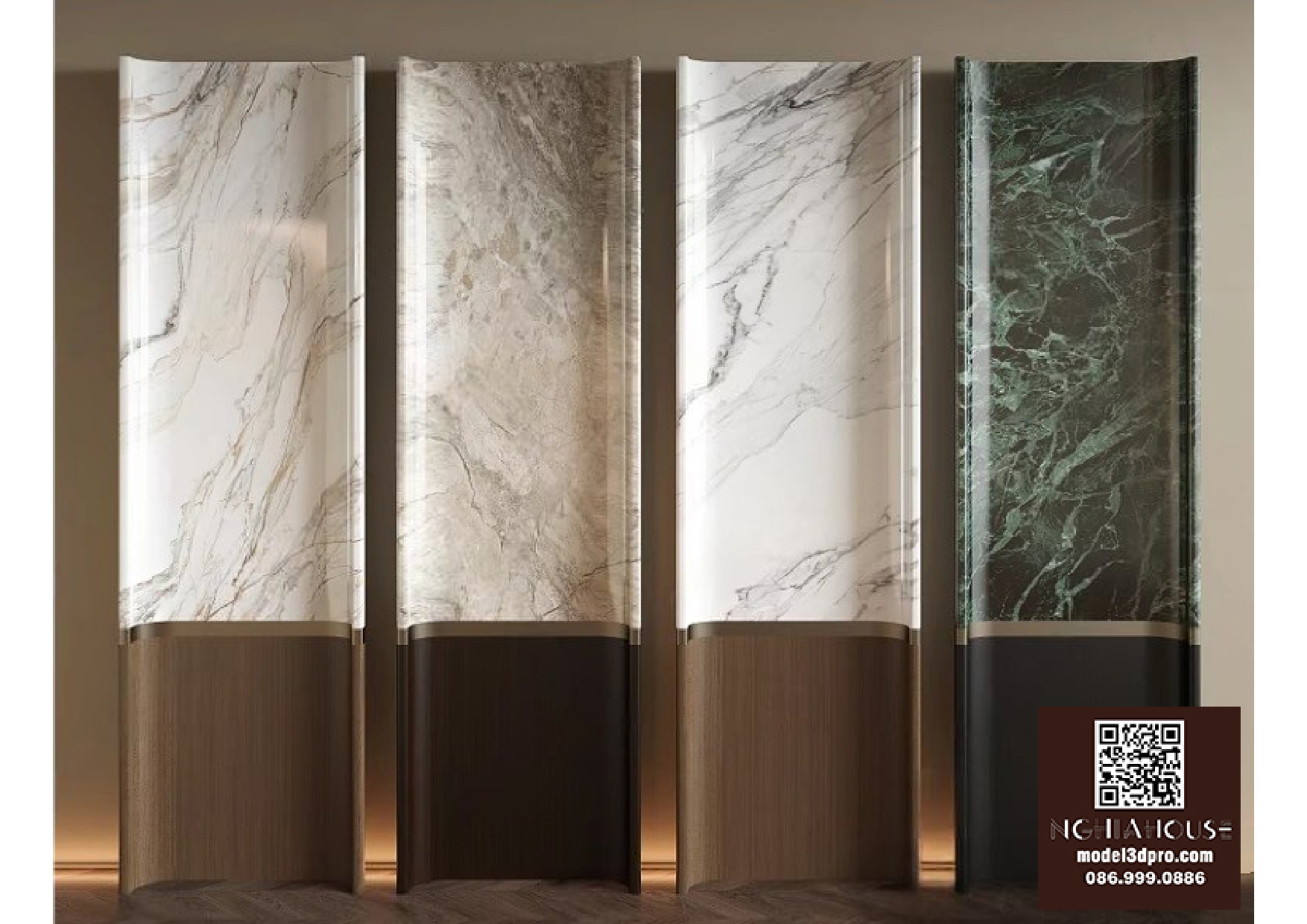 Luxury Marble and Metal Wall Panel Set – 3D Model_102195636