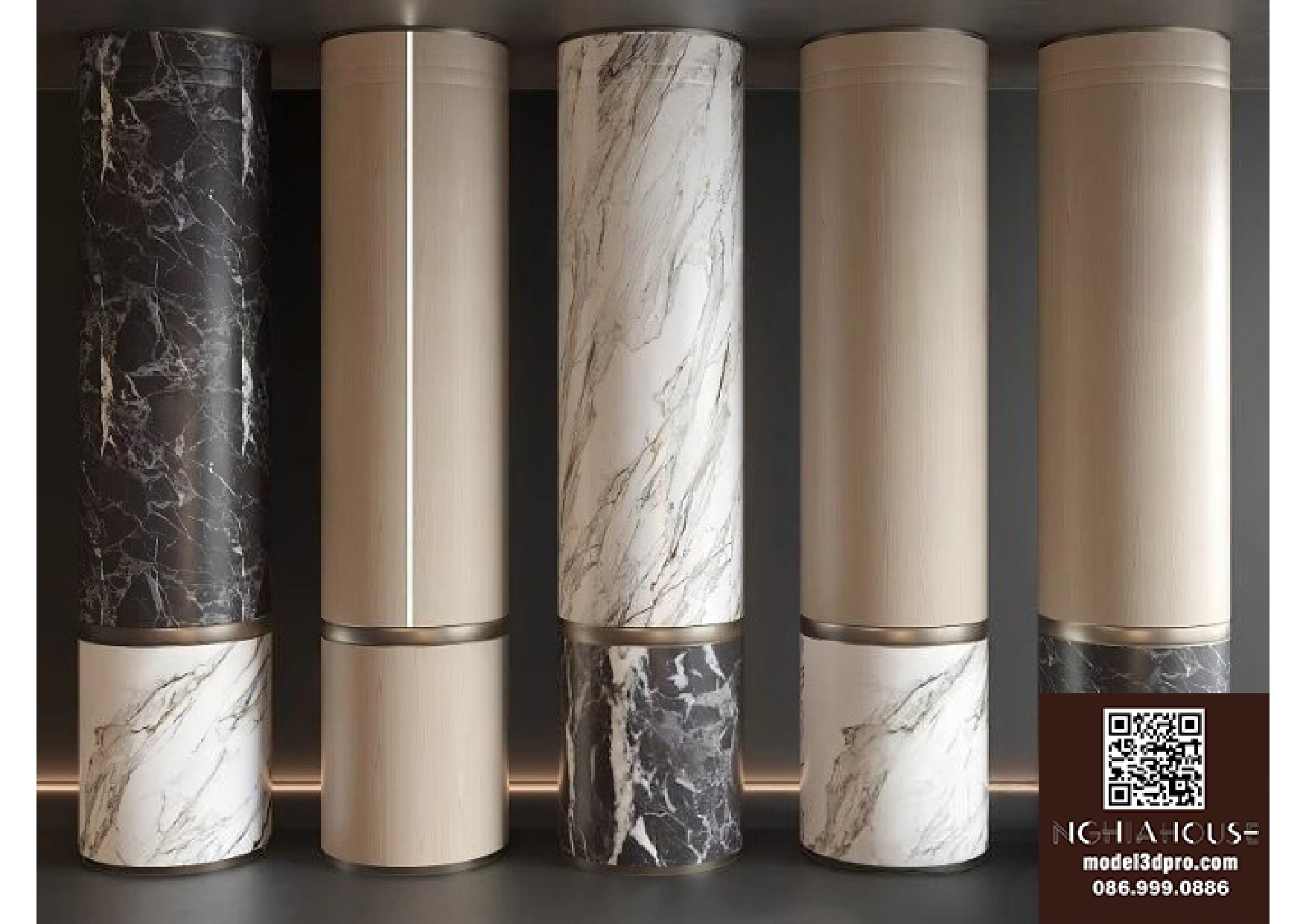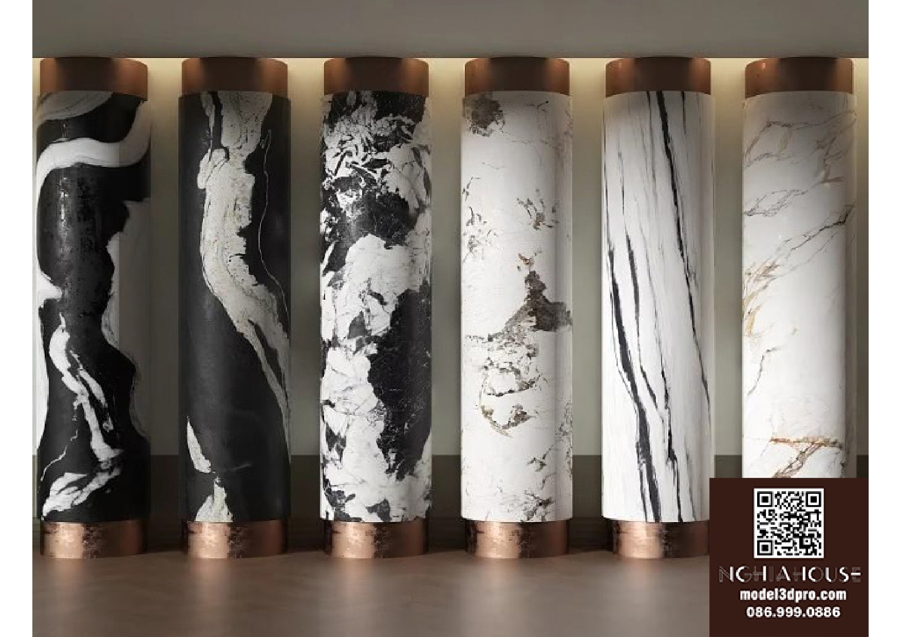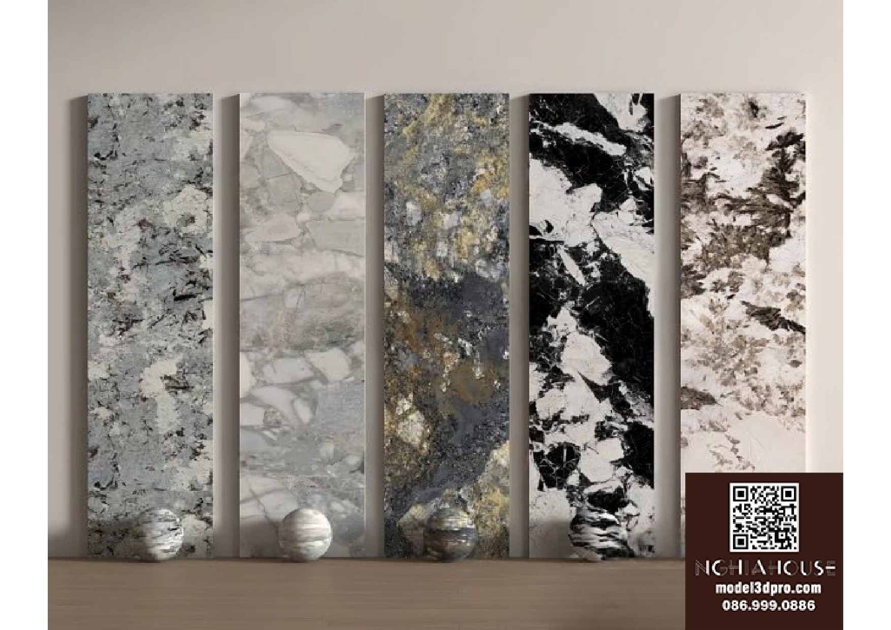 Luxury Marble and Metal Wall Panel Set – 3D Model_102195636