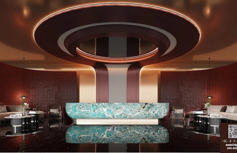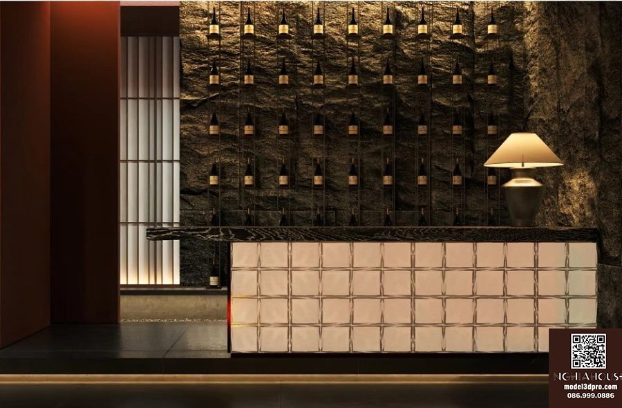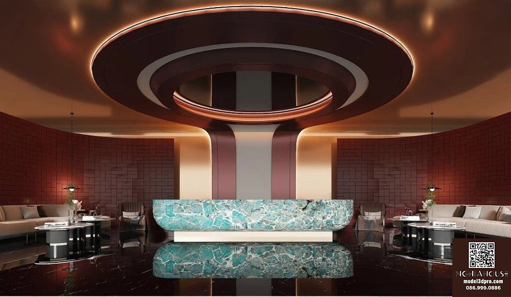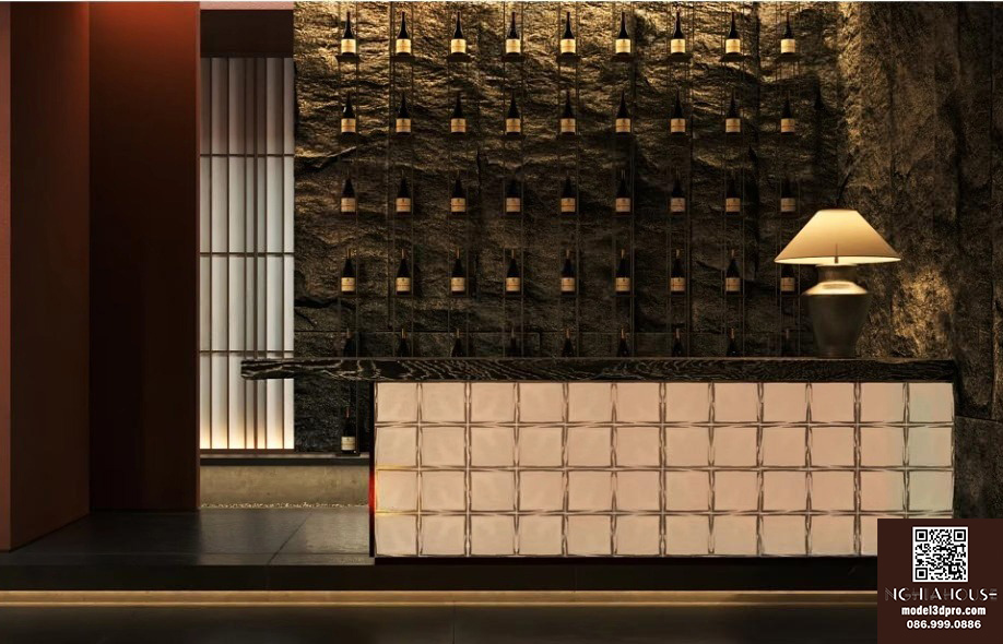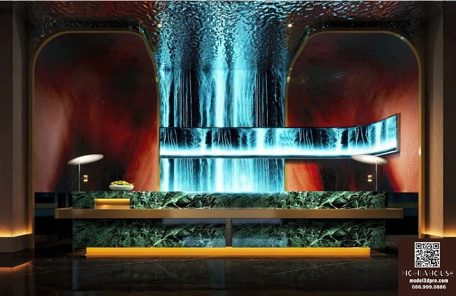 3D Model Modern Red Console Table with Marble Wall Background_100756327