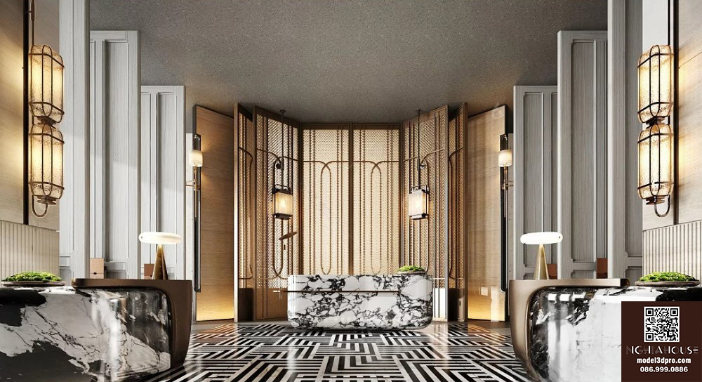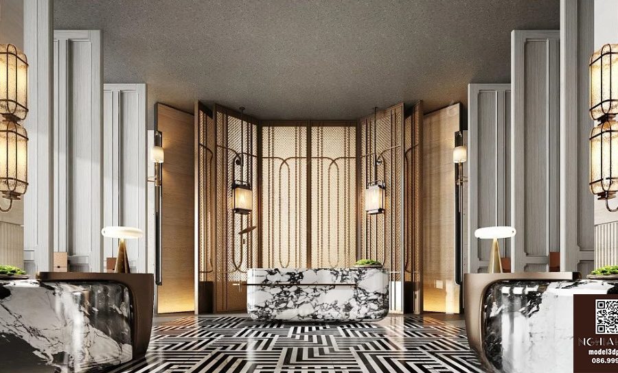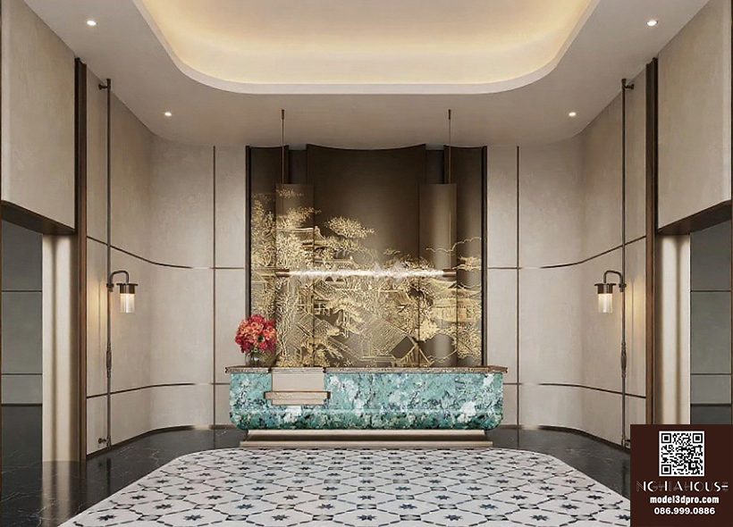 Luxury Marble and Metal Wall Panel Set – 3D Model_102195636
