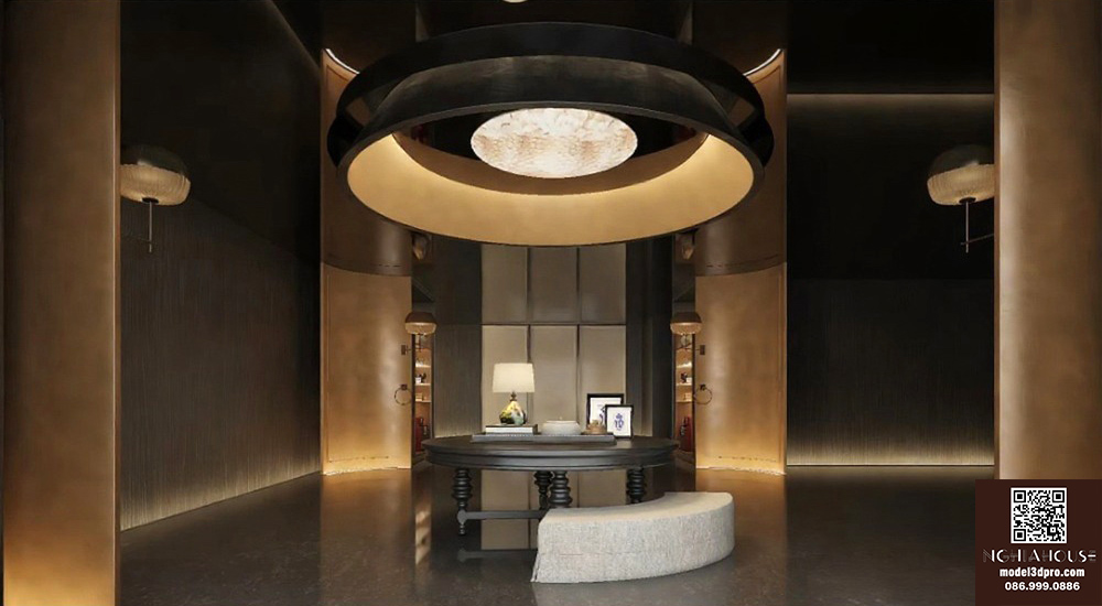 Modern Asian Style Dining Room with Artistic Ceiling Decoration_HJI4803711881809
